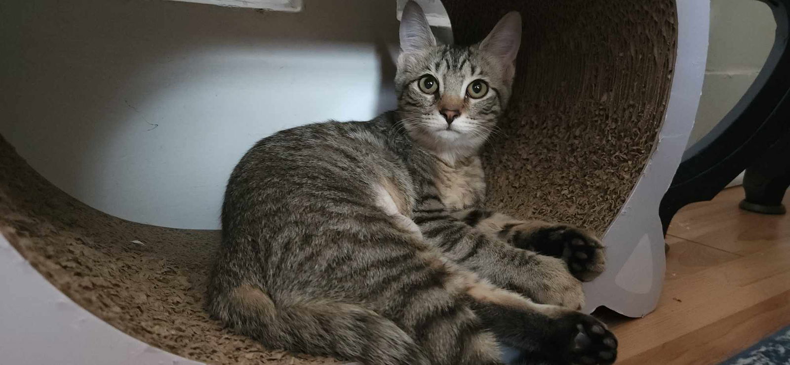 Mandy – Female DOB 10/15/2024 Domestic Short Hair – Black/Grey Tabby Mandy and Bean are a sweet pair of sisters who love to play — with their toys, each other, and anything that moves just enough to spark their curiosity. They’re a little shy at first and like to take their time figuring things out, but once you’re sitting down and the world feels a bit quieter, they’re all about the love. Gentle head bumps, soft purrs — it’s their way of saying they’re starting to trust you. They’re looking for a calm home without dogs, and they’d do best with older kids who understand that some cats need a little space before they show their full personalities. With a bit of patience, Mandy and Bean will slowly let their silly, playful sides shine. If you're someone who doesn’t mind earning a cat’s trust and loves the reward of seeing them bloom, these two might be just the pair for you. Please apply via our easy online application at https://furrr.org/cat-adoption-process/All kitten(s) and cat(s) at FuRRR Feline Rescue are spayed/neutered, up to date on vaccinations for their age, combo tested for FIV/FeLV, microchipped and have a Health Certificate from a licensed NH veterinarian. Our application is available to be completed online at https://furrr.org/cat-adoption-process/ Applying DOES NOT guarantee approval. We hold meet and greets with approved applications only. (Kittens are available for adoption in pairs only unless they are going home to another kitten or young cat under 3) Our policy is strictly NO DECLAWING and INDOOR ONLY. Adoption fees: Kitten to 1 yr – $300 Kitten pairs $550 Adult cat 1+ yr to 8 yr – $200 Adult pairs $350 Cat 8+ – $75