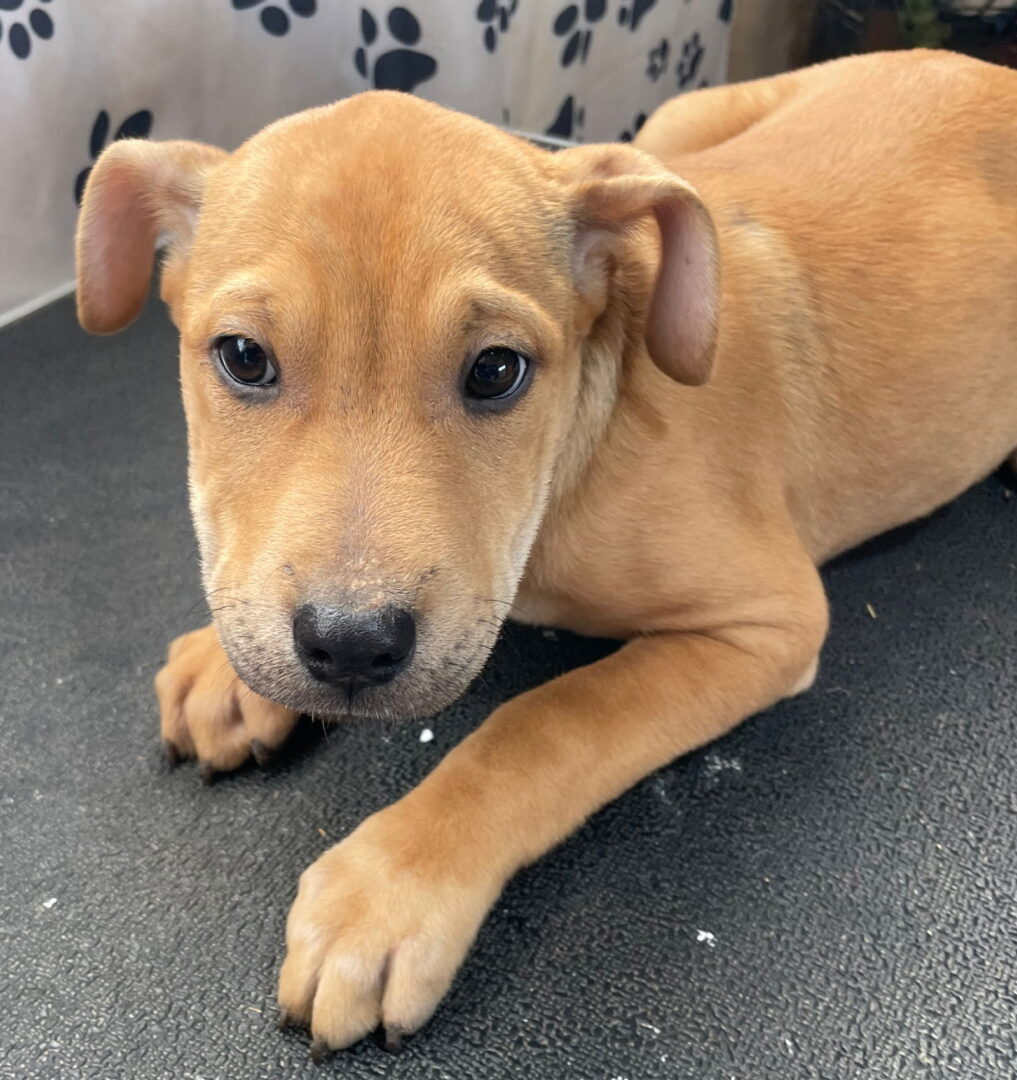 This girl was dropped off with her siblings. She is a sweetheart and is coming out of her shell. She is friendly, happy and likes playing with other puppies. She will need puppy training and a lot of love!