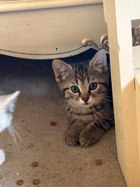 See Marble’s HomepageYou can fill out an adoption application online on our official website. Loves to play with her siblings. Has tabby sass with a hiss when she is nervous, shy at first but loves to play when comfortable Estimated DOB: 09/7/25 Adoption fee: $100 (6% KY sales tax included) We would love to hear from you! To inquire about this cat, please contact us via this site, visit our website sc4paws.org to see a full bio, or visit sc4paws.rescuegroups.org/forms/ to fill out our adoption application. Important: Our cats reside in foster homes. Please fill out our adoption application if you would like to meet one of these special kitties! SCHS Veterinary Care and Services for Cats (6 months of age and older): Prior to being placed for adoption, all cats, at a minimum, receive a veterinary exam, are neutered/spayed, tested for FeLV, microchipped, current on booster(s) and rabies vaccinations, de-wormed, flea treated, and checked/treated for ear mites. SCHS Veterinary Care and Services for Kittens (under 6 months of age): Prior to being placed for adoption, all kittens, at a minimum, receive a veterinary exam, are neutered/spayed, tested for FeLV, microchipped, current on booster vaccinations, de-wormed, flea treated, and checked/treated for ear mites. HELP TO SPONSOR THIS KITTY BY MAKING A DONATION! SCHS is a 501(c)-3 nonprofit organization that is volunteer-run.