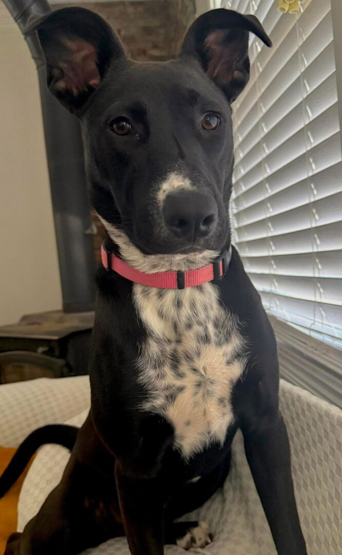 Marian is a gorgeous 8ish month old terrier mix that has the sweetest disposition. Her jet black coat with is stunning! Not to mention she has cute little white toes with black spots for a little extra character. Marian is a dog’s dog. She LOVES playing with other dogs. She loves wrestling with her human too! Marian would adore you forever if you take her hiking. This girl is fully potty and crate trained. She’s also begun sit/down training and is doing really well. She’d love to sleep in your bed if you’d let her but is calm and quiet in her crate until she needs to go potty in the morning. All of our dogs are spayed or neutered, up to date on age appropriate vaccinations, microchipped and if over 6 months of age, heartworm tested and on heartworm preventative in their foster home. We require an approved application to meet any of our dogs. We do not have a shelter location and will not arrange a meeting without an approved application. We strive to make sure the bios provided for our dogs are complete and accurate; we do understand that mistakes happen, however, so if you absolutely cannot find the answer to your question in the dog's bio, you can contact us for more information. We require a home visit for each dog we adopt out, so we adopt within a 2 hour radius of Dayton, OH. If you are outside of this radius, we encourage you to contact your local rescue or shelter.