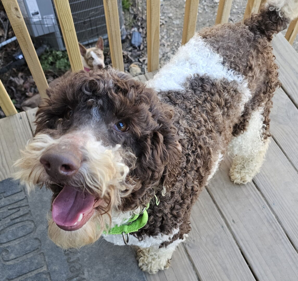 Meet Marlin! Breed: mini golden doodle. Age: est 1 year 2 months, est birthdate 11/2023. Weight: approx 44lbs, he has lost some weight and needs to loose a little more. Training: crate and leash trained, and doing well with house training. He hasn’t had many life experiences, but he is so eager to please you. He is very food motivated. Good with other dogs/cats? Yes, LOVES other dogs. In fact, we think he’d do best with another dog to teach him the ropes. Good with adults/kids? Yes. Personality: shy at first, but curious, affectionate, loyal, friendly, and playful. Reason for rescue: breeder release, retiring. He is neutered, microchipped, heartworm negative, and current on vaccinations and preventatives. If interested in adding this sweet baby to your family, please message for an adoption application! Adoption fee: $350.