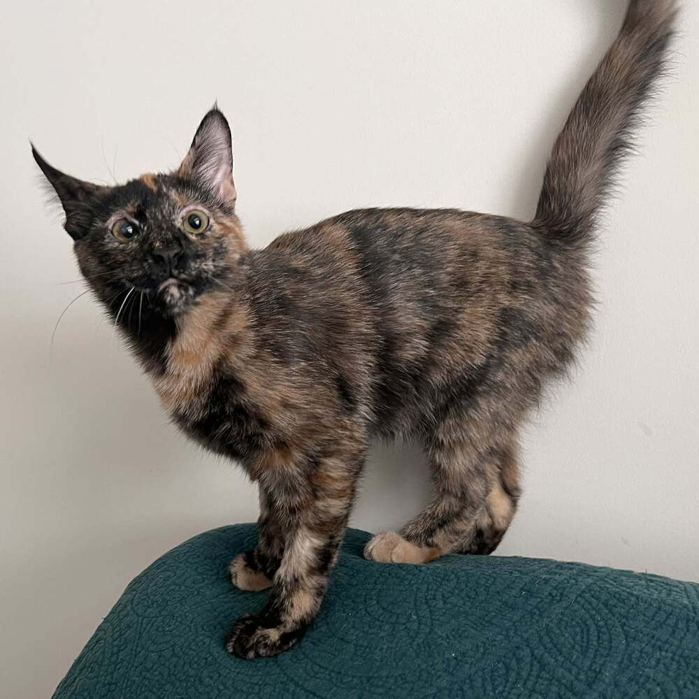 Marmoset is friendly, very, very energetic and wants to be the center of any attention that is being doled out. If you wait too long to notice her, she has been known to start playing with her foster mom's hair and back of her head (sometimes rather too energetically). Marmoset is extremely active at playtime with her siblings and wants to be the first to get the ball or mouse. She can jump high, loves to climb and purrs so loudly when held. This litter of kittens are neat eaters and have the best litter box manners! And if you are looking for a pair, Capuchin and Marmoset are best buds.SPECIAL NEEDS: Lifelong over the counter lubricating eye drops 2 times per day. These kittens will take very special adopters but they are oh so sweet! They arrived with terribly infected eyes as two week old kittens that had to be bottle fed, besides their eyes, they have thrived in every way. Marmoset and her siblings saw a veterinary eye specialist as they were born without upper eye lids. Their fur was rubbing on their eyes and they had some vision loss from the early infection. Marmoset had cryotherapy on the upper lid of both eyes so the fur will no longer grow into her eye and cause further pain and distress. Over their lives, their vision may worsen but it will happen slowly over time and they are so risilient they will adjust. Meet these special babies, Capuchin and Marmoset by completing our adoption application. All cats are spayed/neutered, up to date on age-appropriate vaccines, microchipped, FELV/FIV tested, dewormed and started on monthly flea preventative. All Mountain Pet Rescue (Asheville) animals are up-to-date on vaccinations, spayed/neutered and micro-chipped before adoption. Contact the foster parent or Mountain Pet Rescue at pets@mpravl.org for more information. Please note that visual breed identification of companion animals has been proven to be unreliable, so for most of our animals we provide a best guess at predominant breed or breed mix. We get to know each of our animals as an individual and do our best to describe and place pets based on personality not breed label. Mountain Pet Rescue is a 501(c)(3) non-profit tax deductible charity (EIN 82-3039637) located in Asheville, NC.
