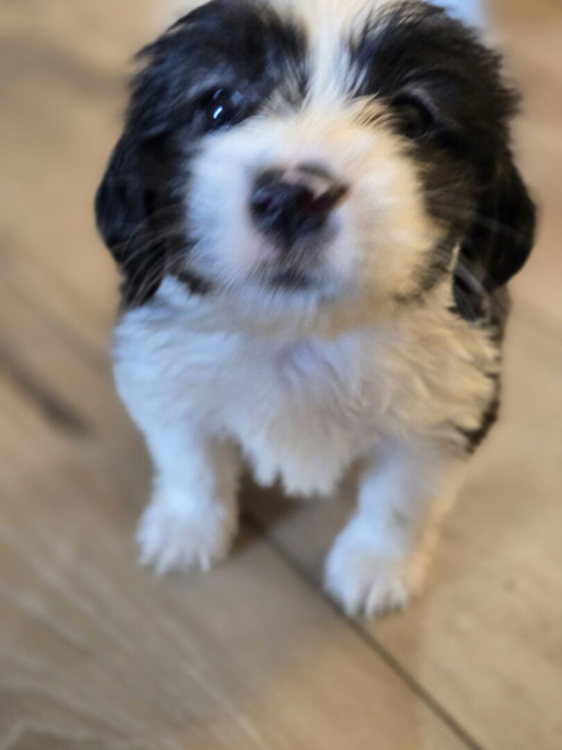 I am part of a litter of 6 pups. My mama had mastitis so my foster began bottle feeding me. I am now on wet and dry puppy food and ready forvmy forever family. My mama is a Maltese and my dad is a mini Australian Shepherd so that makes me a Aussietees.I am learning how to go on a potty pad in my crate and doing well. I'm ready for my forever family.