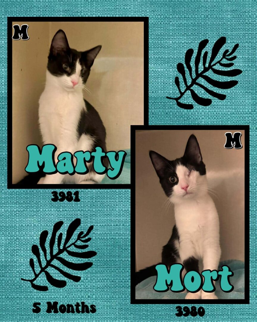 See MARTY’s HomepageGo to our official websiteYou can fill out an adoption application online on our official website. Please note that we can not guarantee the age, expected weight or breed of any animal. What we provide is our best estimates based on our experience and the information provided by the our medical partners. If breed and eventual size are of great importance we suggest looking into a breed specific rescue or adopting a full grown animal. Unless otherwise noted, ALL animals are fostered and available for adoption on Long Island, NY. Meet the one eyed siblings Marty and Mort are sweet playful boys who had a rough start to their kitten lives. These brothers came into the shelter with terrible eye infections and luckily only had to have one eye removed on each boy. They love to play, be silly and make people laugh. They are ready for their fresh starts in NY This baby is spayed/neutered, UTD on vaccinations, is FIV and FeLV/Feline Leukemia Negative, and ready to find a soft spot to land and enjoy a family! we are a foster based organization located on Long Island, NY. We do out of state adoptions within a reasonable distance. Please visit LCARescue.org for an application or more information!