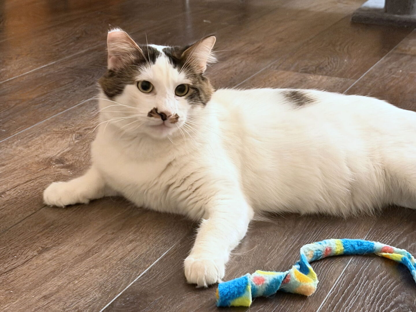 I am currently available for adoption at the Foothill Ranch Petsmart. If you’re interested in adopting me, fill out an application on our website www.carmaoc.org My name is Mason. I am a husky, short-haired ‘tabico’ male. I have the most unique markings – all white with tabby ears and tail. My fur is super soft like a bunny. I’m sweet, affectionate, and playful! I rub up against my foster mom and purr instantly. I love ribbon wands, chasing balls, and hanging out at the top of a cat tree. They are not sure of my history, but it seems my former family abandoned me and I ended up in a cat colony, where I clearly did not belong because I’m a sweetheart. I would do well in a home of older children or adults who will help me work on my social skills. My adoption fee is $175. That includes spay/neuter, microchip, FIV/FeLV combo test, current vaccines and health check.