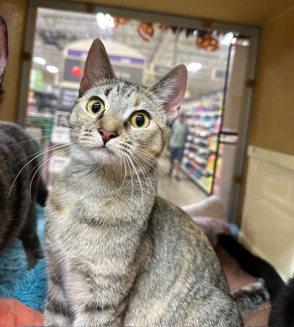 I am currently available for adoption from my foster home. If you’re interested in adopting me, fill out an application on our website www.carmaoc.org Hi! I’m Matcha! I’m a very friendly outgoing girl! I look at the world with my happy round sparkling eyes. I’m easy to make friends with, I play anytime and with anyone who wants to play, and I don’t mind sharing my toys and hammock. Not just energetic I’m also a super sweet affectionate kitty. I chirp and purr whenever I see my humans. I love rubbing my round head on their hands, or flopping down next to them and fall asleep. I love my siblings very much too, really wish I could go home with them. Just like my sister and brother, I am purrfect inside out with lots of love to give! My adoption fee is $175. That includes spay/neuter, microchip, FIV/FeLV combo test, current vaccines and health check.