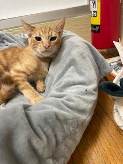 Meet handsome and charming Mateo, who always shows up looking sharp in his crisp white bib and boots and gorgeous dark marmalade orange stripes. He not only brings his great looks, but this dandy dude is well-known for being the life of the party! He knows the winning formula: enjoy everyone and be a bit of a goofball so everyone has a good time! His favorite ice breaker is to reach out and give you a little surprise tap when you didn’t even know he was there. It never fails to get a chuckle and maybe even score a cuddle and some petting! This cutie’s great purr is just an extra dividend! With such a happy, affectionate, and easy-going purrsonality, meow-velous Mateo is sure to be a lucky family’s delightful addition! For more information & an online application go to https://www.cathouseonthekings.com/adoption/cat.php?id=27075&ts=1761721409&src=rg