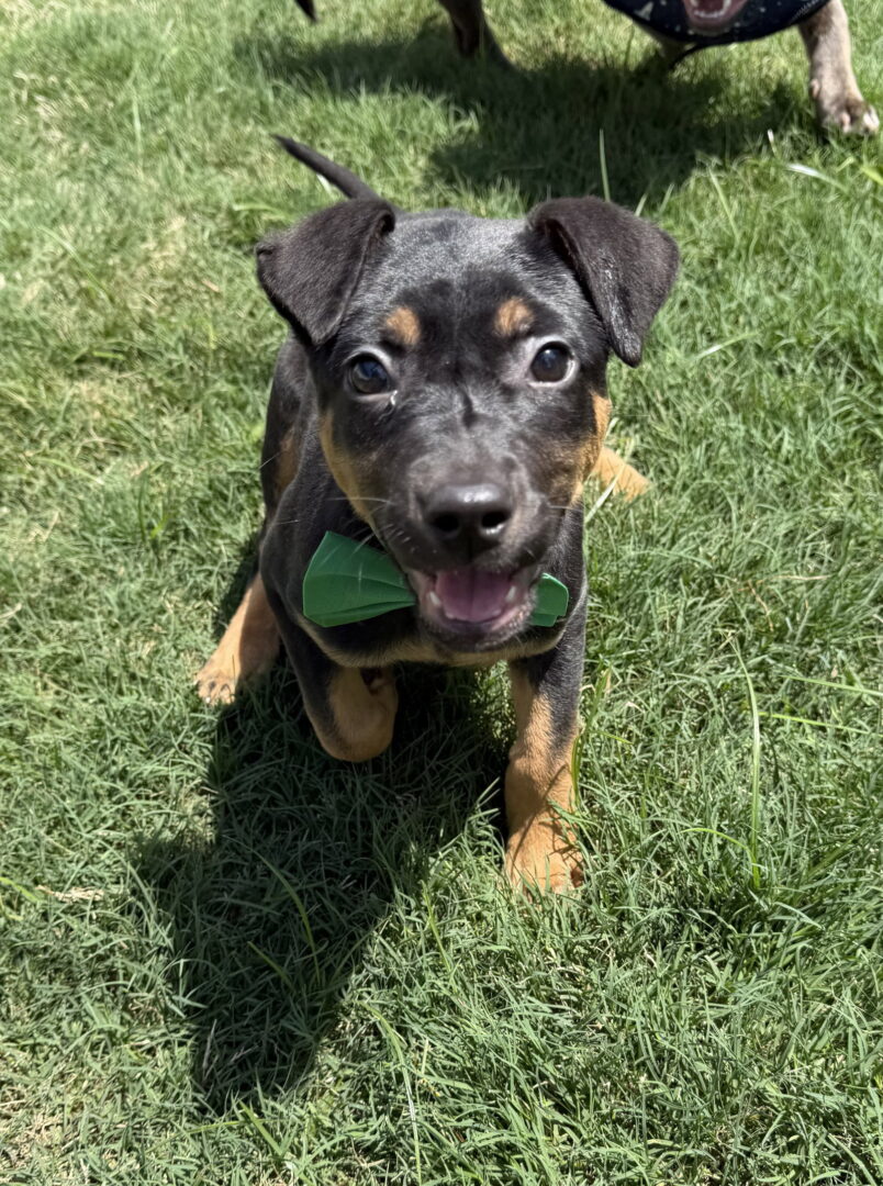 This handsome little man came from a cruelty case and has survived parvo. He is a loving and curious puppy. He loves toys and is happy to play with you, with other dogs, or all by himself. He is small but mighty and is not afraid of new things. We are working on leash walking but he loves to go for walks and inspect new places. He is pee pad trained and we are trying to work on going potty outside. He would be a great dog for just about any situation he is good with other dogs and all kids big or small.