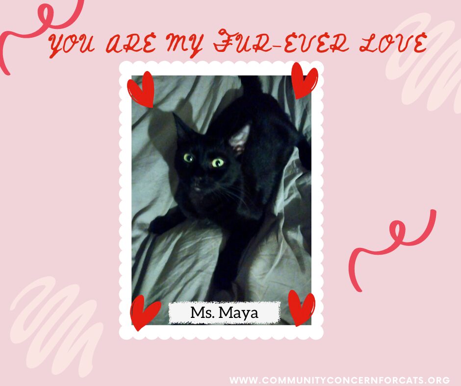 Please contact Kay (kericksonttt@yahoo.com), (925) 408-5249 for more information about this pet. Want to meet? [Fill out the Application], then email it to the contact in this bio. If interested, contact Kay at kericksonttt@yahoo.com or 925-408-5249. Maya is a young adult, solid black, short-haired female cat. Born in 2021.