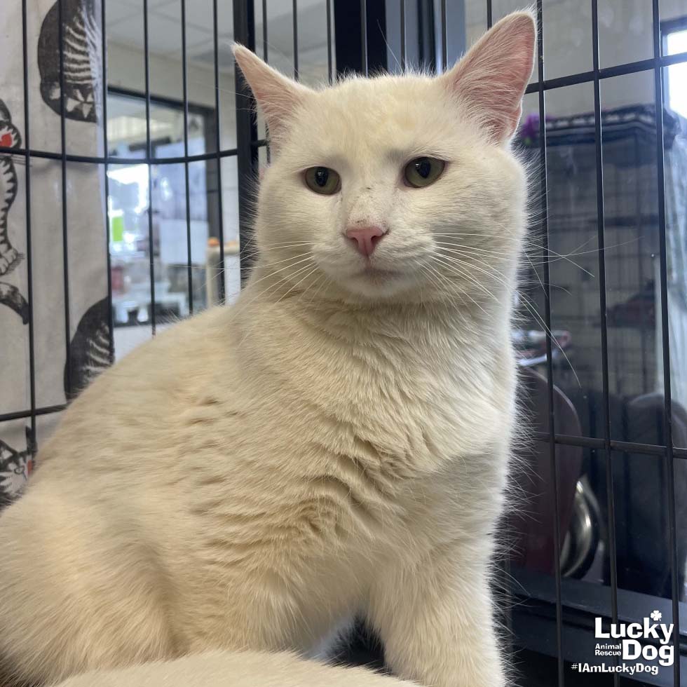Please contact Jessie Cheng (jessie.cheng@luckydoganimalrescue.org) for more information about this pet.Mega Kev will bring mega love to your home!MEGA KEV NEEDS A FOREVER HOME!!!! Name: Mega Kev Best Guess for Breed: Domestic Short Hair Age: 1.5 years (Est. DOB: 7/30/2023) SEX: Male Approximate Weight: 9.4 lbs Coloring: White Type of Hair: Short Gets Along With: With proper integration, Mega Kev will likely get along with cats, dogs, and kids with an acclimation period. We’re happy to help with tips and tricks! Currently Living at: Foster home in the DC area! I am Looking For: My loving forever family! Hi! I’m Mega Kev, and I am a sweet kitty! I won’t ask for much- just some love, cuddles and lots of toys so I can run and play and be myself. What My Foster Says About Me: Coming soon! TO ADOPT: The adoption fee for adult cats is $200 ($350 for two cats adopted together). The adoption fee for a kitten (under 7 months old) is $220 ($380 for two kittens adopted together).If you are interested in adopting, please complete the Adoption Questionnaire online at bit.ly/adoptaluckycat. Lucky Dog Animal Rescue does our best to provide accurate information about the cats we have for adoption. That said, we cannot make any guarantees about age, breed or temperament. Thank you for contacting Lucky Dog Animal Rescue and helping to save a life! Please visit us online at www.luckydoganimalrescue.org . BE A FOSTER!!! Fosters make it possible for Lucky Dog Animal Rescue to save and care for homeless and abandoned dogs! To learn about fostering, please contact fostering@luckydoganimalrescue.org BE A SPONSOR!!!! Sponsors help Lucky Dog support the many dogs we save. To learn more about sponsorship, please contact info@luckydoganimalrescue.org !