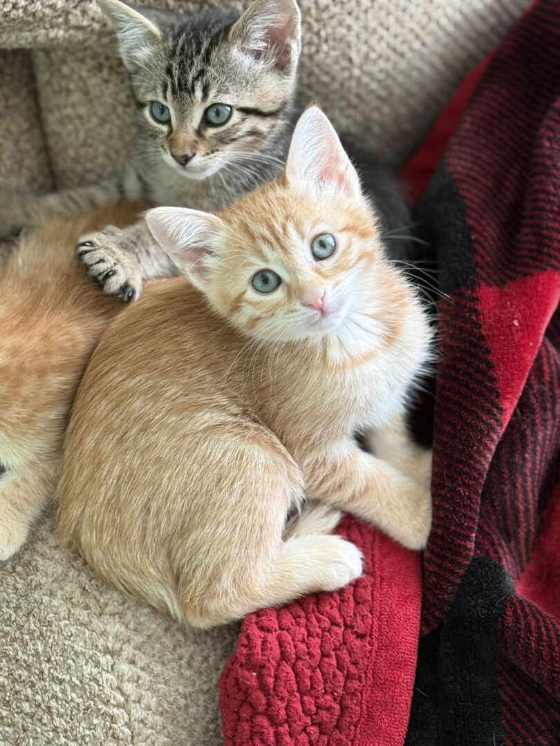 Hi, my name is Miami! I am a two month old orange tabby girl looking for my forever home. It is rare for orange kittens to be girls, so I am one of a kind! My foster mom says I am a perfect kitten! I am sweet, love to cuddle, and spend lots of time hanging out with my brother New Orleans. I like to play with coil toys and toys that make noises. I am good with other cats and kids, and as a bonus, I am super quiet at night! I am currently staying at the PetSmart condos in Fulshear— I would love it if you came to visit me during our adoption events on Saturdays from noon to 3 PM. My adoption fee is $150, and it includes my vaccines, microchipping, and spay procedure. I would love to be adopted with my brother in New Orleans, and if we get to stay together forever, our adoption fee will be $250. I’m still too little to be spayed, but if I am adopted before my final vet visit, my new family can take me to that final vet visit, and SOCA will pay the fees.