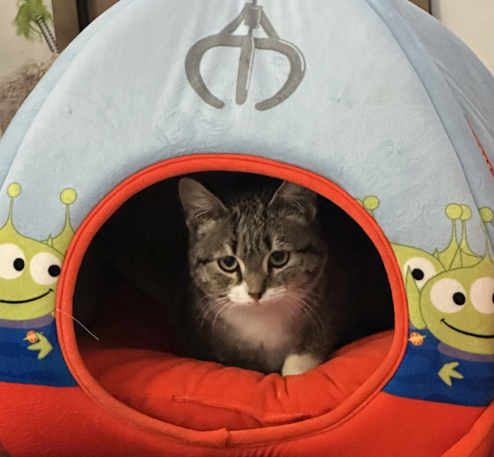 Micro will be shy at first and need a little patience. She needs to be in a home with another friendly cat that will cuddle with her or she will not be happy. She thrives with other cats around.