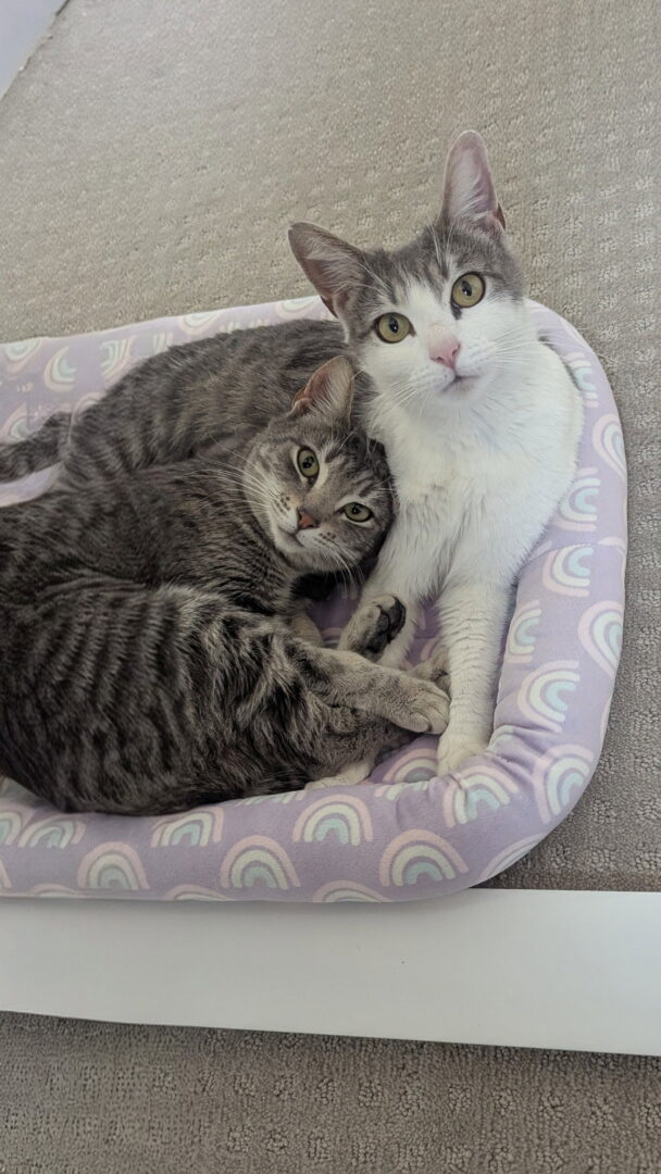 I am currently available for adoption from my foster home. If you’re interested in adopting me, fill out an application on our website www.carmaoc.org Hi! I’m Mika and I was rescued with my partner-in-mischief Nessa. I’m the athlete of the duo. I’m always ready to pounce, leap, and turn literally anything into a game. I love play-fighting (don’t worry, it’s all in good fun!) and launching surprise attacks on Nessa when she least expects it. Life is more exciting that way. We might be a little shy when we first meet you (new humans are a big deal!), but give us a little time and you’ll start to hear our tiny chirps – that’s our way of saying hello and asking if you’re safe to love yet. Once we warm up, we’re equal parts sweet, silly, and endlessly entertaining. One of us is definitely more food motivated (we won’t name names, but treats are a big deal), while the other prefers to burn off energy with zoomies and acrobatics. Between the two of us, you get the perfect mix of cozy and chaos. We’re still learning that the world isn’t so scary, but with a patient and loving home, we promise to fill your days with soft chirps and playful antics. My adoption fee is $175. That includes spay/neuter, microchip, FIV/FeLV combo test, current vaccines and health check.