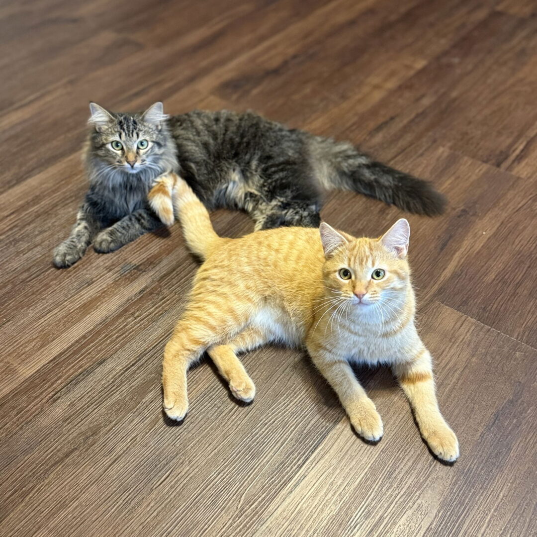 If you are interested in adopting an ARPO pet, please visit our website, for details about our fees and process, and to complete our Adoption Application.   ARPO limits adoptions to within 50 miles of Indianapolis.  We do not have a shelter; all pets are in volunteer foster homes.    Sulley and Mike Wazowski are a pair of lovable, bonded brothers named after the iconic characters from  Monsters, Inc. —and just like their namesakes, they’re full of personality, charm, and plenty of heart. Found dumped outside around Halloween, these two weren’t scared at all—just sweet and eager to find their forever home together.   Sulley, the fluffy, long-haired brown brother, is your gentle giant. He’s affectionate, loyal, and always nearby, ready to be your shadow. Whether he’s snuggling in your lap, following you from room to room, or chirping little meows to say “I love you,” Sulley’s mission in life is to make you feel adored. He’s also a spring toy fanatic, often carrying them around proudly or showing off his expert batting skills.   Mike, the short-haired orange brother, balances Sulley’s clinginess with a more relaxed vibe. He enjoys lounging in the cat tree to watch squirrels, batting and hunting toys, and climbing into your lap when he’s in the mood for cuddles. Mike also has a soft spot for giving gentle love rubs against your legs.   Both kittens share a love for wet kitten food and the feather-on-a-stick toy. Their bond is as unbreakable as the friendship between their namesakes, making them inseparable. If you’re ready to open your doors to these two "scarers-in-training," Sulley and Mike Wazowski are waiting to show you that laughter—and love—are the best powers of all!   Sulley & Mike’s estimated date of birth is 6/1/24. They have been neutered, microchipped, and dewormed. They tested FIV/FeLV negative, have a negative fecal, and are up-to-date on vaccines. Their ideal adopter is willing to feed them a moisture-rich species-appropriate diet (wet food). They are being fostered in central Indianapolis. Apply to adopt them today at www.adoptarpo.org/adoption-application/   Sulley & Mike are at Nine Lives Cat Cafe until 1/7/25. To schedule a time to meet them and other ARPO kitties, please visit ninelivescatcafe.com. Normal ARPO adoption requirements still apply.    If you are interested in adopting an ARPO pet, please complete the online Adoption Application.  If you would like to donate to this pet's care, please click here.