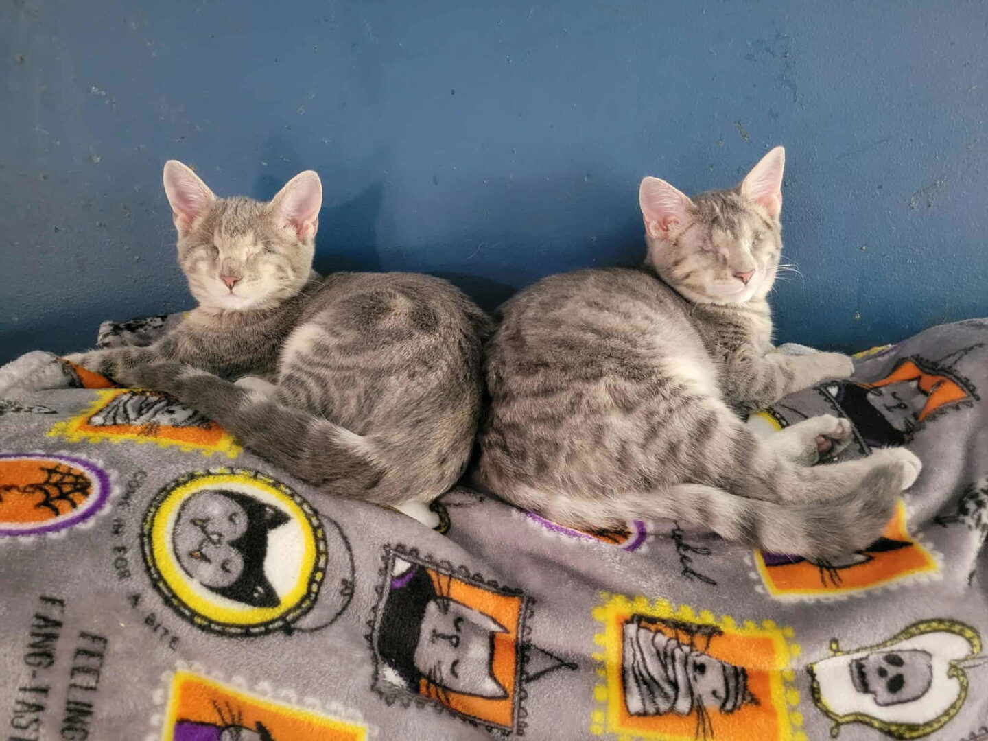 See Mikey (with Roz)’s HomepageMikey and Roz Mikey and Roz were found outside as small kittens by a wonderful family who took them to the emergency vet and started medication for their severe, previously untreated, upper respiratory infection. Their care continued when they were transferred to their current foster home with FURR, but unfortunately they did not have any vision. They’ve had many vet checks and entropian and enucleation surgery (shout out to the awesome Dr. Jenna at FURR Fix!) and are now ready to find their forever home. They will not need any different vet care than a normal cat would. Many will feel sorry for them, but they’ve already proved – no eyeballs, no problem!-finding the food dish? Our sniffers are top notch… wet and dry, we eat it all. We aren’t picky with flavors and also love treat time.-using the litter box? We never miss… we have no problems getting in and out of the box.-cuddling? We’ll find your lap, your hand, your back, your face… if you’re sitting on the floor, laying in bed, or on the couch. No worries, we cuddle it all!-play time? The only time we’re not playing is when we’re sleeping. Springs are our #1 fav (Mikey may even have a slight spring aggression issue), but any other jingly ball, rattle mouse, another cat, twist-tie, or ball of paper will do. Admittedly, we can’t follow that elusive red dot, BUT – we will chase around your other cats that are following it. ;o)-getting around the house? We have full-reign at our foster house and get around the house in each room with no issues. We easily get on and off the couch and beds.-biscuits? We could open a French bakery! We get purring and get in that zone and we’ll make biscuits anywhere- your cheek, on your arm, on a nice soft blanket- we aren’t picky.-stairs? We’ve encountered stairs a couple times when we were younger to the finished basement in our foster home and had no issues. Just give us a couple days and I’m sure we’d master them with no issues.-scratching? We easily find the tall sisal scratching posts to scratch and stretch on, and don’t scratch on the furniture. The cardboard scratchers are also great. Cutting our nails isn’t our favorite thing, but our foster mom will clip a few at a time when we’re napping or it can be easily done as a 2-person job. Mikey is a playful boy and also a cuddler. His fur is SO soft. Roz is a little less rambunctious, but still has that playful kitten energy. She’s also the first one to find your lap and enjoy your company. They get along with the other adult cats and human children (ages 2 and 8) in their foster home. Both are always out and about and involved in everyday life. Mikey and Roz must be adopted together, and are ready to show their forever family just how ‘special’ they are. If you’d like more information about them or have specific questions, feel free to reach out and we can give you the contact information for their foster mom. View the full bio/profile and photos/videos HERE:https://www.felineurbanrescueandrehab.org/animals/detail?AnimalID=21804382 All FURR Cats & Kittens are seen by a vet before being posted online and have been: Spayed / Neutered to help control the pet population Microchipped to help ensure your best friend can be brought home if lost. Vaccinated; FVRCP (Feline Viral Rhinotracheitis, Calicivirus, Panleukopenia) & Rabies (which is legally required in most states). These will need to be kept current after adoption. Tested Negative for FIV & FELV unless otherwise noted on their profile Treated with de-wormer, anti-parasitics, flea baths & prevention, ear mites and anything else our vet deems needed for good health. This can sometimes include antibiotics and eye/upper respiratory medicines, etc. Many of our fosters also use pre/probiotics and vitamins to fully support their tiny immune systems during transitions. —To meet any of our cats please fill out our adoption application to be approved. Our application can be found under the ‘Adopt’ menu on our website: www.felineurbanrescueandrehab.org. —FURR is a 100% volunteer organization. Every penny donated goes to paying our vet bills, caring for our cats, and TNR. FURR is a 501(c)3 organization so donations are tax deductible.