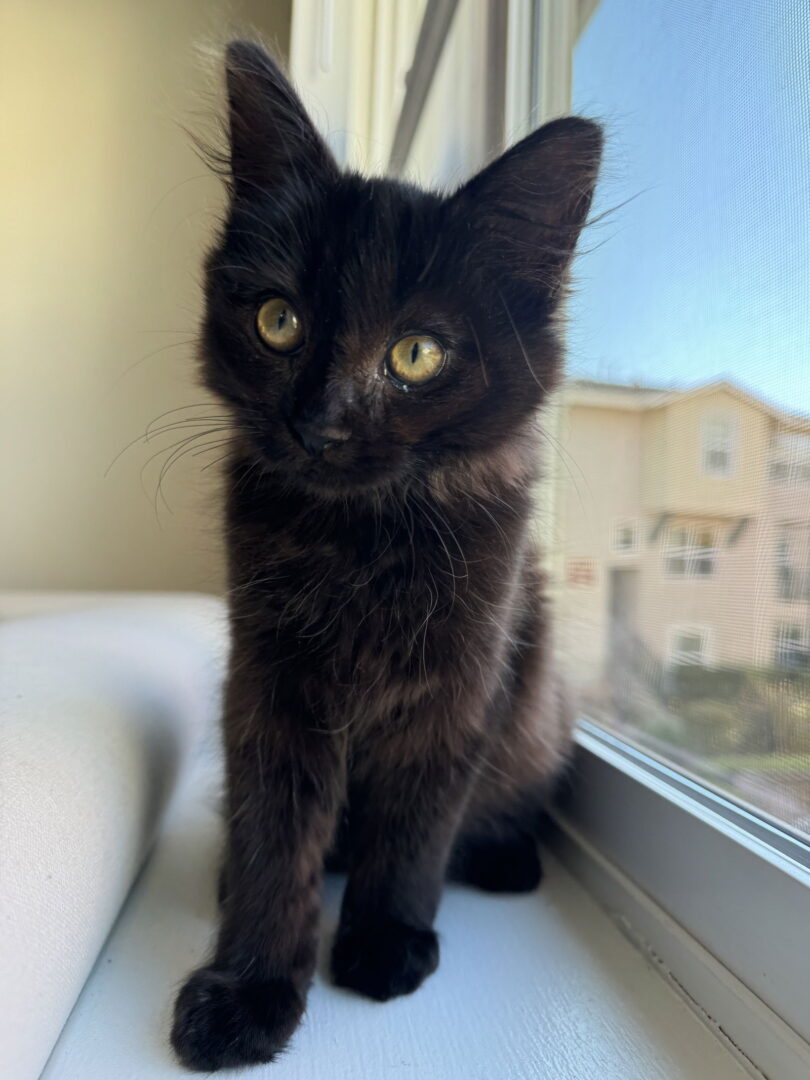 Estimated Birthday 08-24-2024 Okay to live in a home with… Kids Physical Description Mikla is a little black cat with adorable beachy brown and blond highlights sprinkled throughout her fur. Her coat is super soft and she has these adorable little strands of fur poking out of her ears that make her look like she just rolled out of bed! Personality Mikla is a super playful, confident, and cuddly kitten! She spends half of her time running around energetically and the other half peacefully asleep, cuddled up with someone. Mikla enjoys turning any activity into a game, whether it’s walking down the hallway, entering another room, or, most of all, going down the stairs. She loves slowly exploring new places and greeting new people with her tiny chirps and meows! This kitty has what sort of characteristics? AffectionateCuriousHigh energyLikes pettingLikes to cuddlePlayful The best home to adopt me would be Any home The best home atmosphere would be Moderate activityLively/activeAny home Other animals? Slow intro needed with other catsMay be good with gentle dogsSlow intro needed with dogs Apply to adopt here! Online cat application form Applications are also available on the website (www.yolospca.org) It can take up to 3-5 business days to hear back once you have submitted an application. The Yolo County SPCA is a private, not-for-profit, foster home-based animal rescue organization and does not have a shelter. All our animals awaiting adoption are in foster homes. For more information about this animal, please email yolospcafoster@gmail.com. For more general questions, please see our website at www.yolospca.org. All of our felines have been altered prior to adoption. Kittens have been given their first shots of FVRCP, adults are up-to-date on vaccinations, and all cats have been Feline Leukemia tested (negative) and micro chipped. The fee to adopt is $135 for kittens or $80 for adults over 1 year (the fee helps cover these costs and the cost of the microchip registration). A reduced fee is available for adopting a second cat or kitten For more information about an animal, please email yolospcafoster@gmail.com. For more general questions, please see our website at www.yolospca.org.