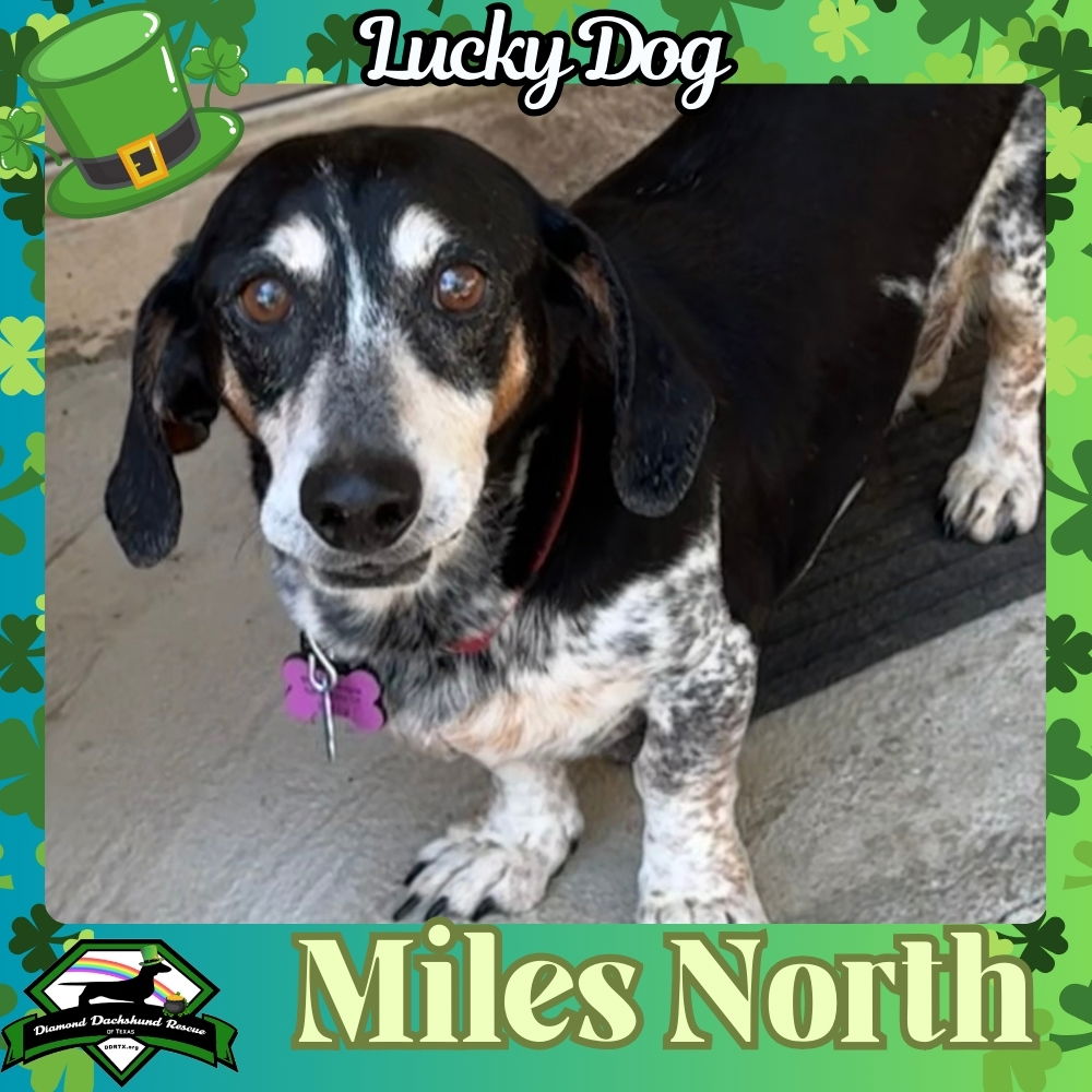 See Miles North’s HomepageGo to our official websiteWelcome to the Wonderful World of Rescue Dachshunds. Look around and read their bios. Find a few whose personality seems to fit well. Consider one of our Well Seasoned Seniors who are truly wonderful and have so much to offer. Need help finding the best fit? We'll help with that too. Please fill out an application and let’s get you all matched up with a loving new “furever’ companion and friend. You’ll find the application on the “Available Dogs” page. NOTE: Adoptions to Central/South Texas residents only Please see FAQs for current adoption fees. DDRTX only adopts in Central/South Texas. Email: ddrtxinfo@gmail.com Primary Website: www.DDRTX.org Meet Miles North. He is an 9 year old dachshund. He weighs 24 pounds. He and his brother, Otis Abe are new to our rescue. They were seen being dumped in a store parking lot. The founder kept them safe until they found help for them. Both boys are lovable, sweet and play well with other dogs and kids. They do not need to stay together but if you are looking for a pair of older dogs that are good together, then look no further than Miles and Otis. Miles and Otis are separated in different foster homes and are doing fine. More about Miles: Miles would love a buddy that will interact with him. He loves to cuddle and will stick to his humans like glue if he doesn't have a doggie buddy. Miles knows the doggie door, still learning to go out on his own when he needs to potty. He walks well on a leash and harness and enjoys his walks. He's a big bulky boy at 24 pounds. He needs a home that can easily pick him up properly when needed. He is a playful guy but not rambunctious. Love dachshunds and not ready to adopt or circumstances won't permit having a dog? How about being a sponsor or making a donation. Every one of our dachshunds receives excellent medical care along with day to day food, love and housing. Being non-profit, we rely on generous individuals like yourselves to help save these fur babies. You can do this specifically for one dog with the sponsor button on their webpage or a general donation on our “How To Help” page. Easy and quick through Pay Pal or your debit/credit card. You generosity is sincerely appreciated by all and is tax deductable. Need other ideas? You'll find tons of them on the How to Help tab. All contributions are tax deductable. Diamond Dachshund Rescue of Texas is a non-profit 501(c)(3) volunteer organization with focus on rescue and adoption of pure breed Dachshunds. All dogs are fully vetted and housed on private property. Meetings are scheduled upon adoption approval. Thank you for your continued support to the rescue and shelter communities! Opt to Adopt!