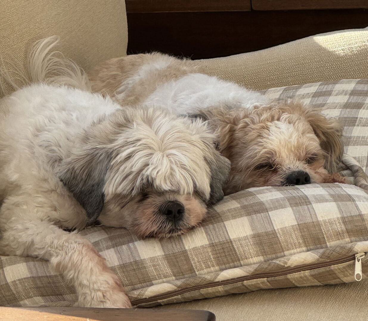 Milley and Josephine Syd – A Bonded Pair Meet Two Little Happy Sisters, Milley and Josephine Syd, waiting for someone to love them back. They are quick to snuggle and give kisses. They love to run around outside, but will bark at deer or outdoor sounds. Indoors, each has a comfortable, individual bed, but in the morning they will be curled up together. Their bond is undeniable. Their fur is extremely soft and both pups love a good rubdown while sitting in a lap. If being cute wasn't enough, they are gentle and easy. Milley and Josephine Syd are a darling pair who are waiting patiently to find their forever home. An Adoption Application for this dog can be found and submitted online. http://www.angelsrescue.org/adopt/adoption-forms Please be sure to like our Facebook page: https://www.facebook.com/angelsrescue. Email inquiry@angelsrescue.org Note: Some apartments and neighborhoods have breed restrictions. We verify rental policies and adhere to any regulations. Please ensure you understand those restrictions before choosing a dog.