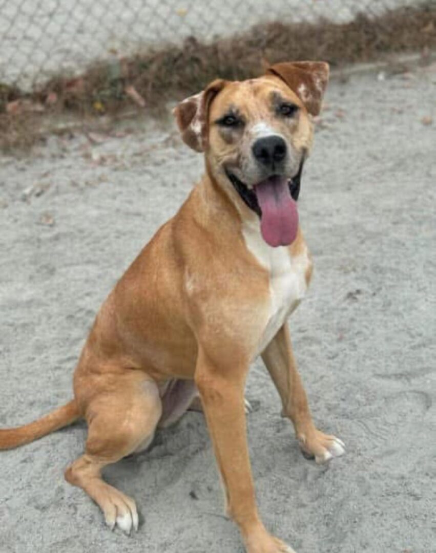 Millie is a 1 year old female Great Dane mix weighing about 70lbs. She is great with other dogs, cats and children. This gentle giant is a bit nervous at first, but once you gain her trust she is the complete in your pocket pup! She knows sit and gives paw!