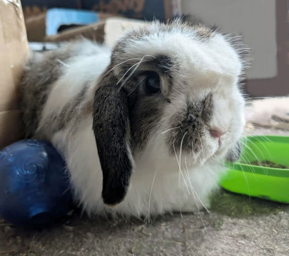 Must adopt with bond mate, Pepper Hi, I’m Millie! I’m a friendly lop with a white and gray fluffy coat that always catches people’s eyes. Pepper is my bond mate and best friend, so we must be adopted together. Out of the two of us, I’m a little slower to warm up, but once I get to know you, I enjoy gentle affection and your company. If you sit on the ground with a blanket, I can’t help but come over to say hi. While I don’t need constant interaction, I do like knowing you’re nearby. Sometimes I like to hop out of my cage to explore, but I’m not destructive—just curious and happy to roam before settling down again. Pepper & I spend a lot of time playing together. We love our enrichment toys, as they help us stay active and keep us entertained! I like most fresh greens, but romaine lettuce is definitely my favorite! I love to eat timothy or orchard grass hay, and especially enjoy my daily Oxbow pellets. I do well with school-aged respectful children, but I haven’t had the chance to meet cats or dogs, so I’m not sure how I’d do with them. Every day I’m working on my litter box habits. Sometimes you might find some poops outside the box, but I try to keep my space tidy. If you’re looking to fill your home with cuteness, love, and a touch bit of mischief – look no further! *RRMN requires all children be 10+ years old for first time bunny owners and 8+ for those with previous bunny experience. All applications are reviewed on a case-by-case basis.* If you're interested, please fill out an adoption application at: http://www.rabbitrescueofmn.com. Gender: Female Approximate birthdate: 5/17/2023 Approximate weight: 5.07 pounds Adoption fee for Pair: $160.00 (+tax) RRMN bunnies are all vetted, spayed/neutered, and vaccinated. All bunnies are fostered in private homes where they are socialized and ready to become indoor companion house pets. RRMN is a non-profit rescue group operated 100% by volunteers, and 100% of donations/adoption fees go to the direct care of our animals. Due to their very special behavioral needs, we do not advocate for our rescue rabbits to serve as Emotional Support Animals (ESAs). We are unable to provide any documentation or certification for an ESA. If you have any questions or are interested in meeting or adopting this bunny, the first step is to complete an adoption application found on our website: http://www.rabbitrescueofmn.com. For the safety of our rescue bunnies, our protocol requires a home-visit before placement. Therefore, we are unable to facilitate adoptions that exceed an hour and a half of travel time from the Twin Cities area.