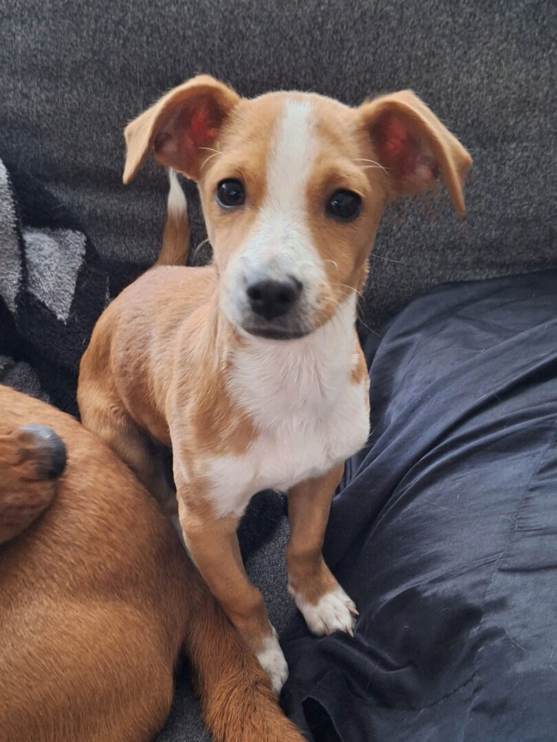 Meet Milo! Milo is a spunky, playful, cuddly 3 month old small breed puppy, currently weighing just under 8 pounds, who has endless joy to bring to anyone he meets! This little man was found on the streets, underweight and riddled with parasites before he came to us. He was a bit shy at first, but his personality started to shine soon after he was rescued! For being found as a stray, Milo has shown to have great house manners and is a quick learner. He is already mostly potty trained (will have the occasional accident as he is still a puppy), and he mimicks the behavior of his foster siblings, looking to them for guidance. Milo gets along with everybody, from the small dogs to big, kiddos and kitties! He loves to roughhouse with the big dogs (particularly with his foster brother Ranger who is also available for adoption), and seems to think he is one himself! At the end of a play session, Milo cuddles hard with his people. He’s the perfect little lap companion and is so loving! Milo would be a great addition to any household and would love to find his forever family! Could that be you? Apply to adopt him today!