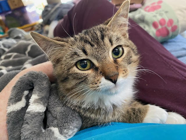 Please meet Milo, a cute DMH tabby/tux! Milo loves to climb, run, and play. He watches every move we make. He is very cautious but has a good relationship with his roommate Sutty (FCID# 08/29/2024 – 66). He loves to look out the windows. Milo is very cuddly with us, and especially playful with my adult cat and Sutty. He also loves to play with his toys. When we hold Milo, he is nervous, but within minutes, he purrs – and sometimes falls asleep. Milo does hide from us. He may need tender loving care and patience when he first comes home to you, but with patience, he will be your best friend very quickly. Milo was about 3 months old on 11/02/2024. Please submit our no-obligation adoption adoption for a meet and greet or to adopt: https://forgottencats.org/adoption-application/. Thank you! (Foster: Donna A.)