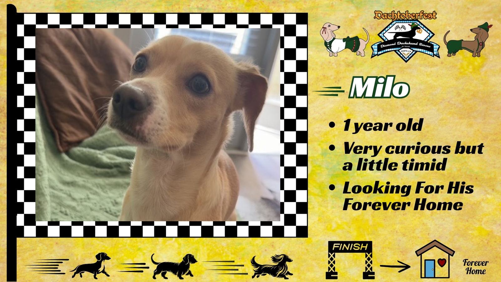 See Milo Oakley’s HomepageGo to our official websiteWelcome to the Wonderful World of Rescue Dachshunds. Look around and read their bios. Find a few whose personality seems to fit well. Consider one of our Well Seasoned Seniors who are truly wonderful and have so much to offer. Need help finding the best fit? We'll help with that too. Please fill out an application and let’s get you all matched up with a loving new “furever’ companion and friend. You’ll find the application on the “Available Dogs” page. NOTE: Adoptions to Central/South Texas residents only Please see FAQs for current adoption fees. DDRTX only adopts in Central/South Texas. Email: ddrtxinfo@gmail.com Primary Website: www.DDRTX.org Milo Oakley is a 1 year old male chi-weenie. He weighs around 15 pounds. He comes from a loving home but his owner had to work long hours and travel a lot with her job. She wanted him to have a home that is home more often for him. He is very curious but also kinda timid. We have been told that he is good with other dogs and even young children. He likes to cuddle while sitting on the couch and he likes to sleep in the big bed burrowed next to you. He is very interested in what you eat but not super food motivated with his own food. Mostly potty trained but will have an occasional accident. Still working on it. Right know he doesn't seem to have a TON of energy like I would expect with being 1 year old. He really likes toys. He would make a great family pet! Love dachshunds and not ready to adopt or circumstances won't permit having a dog? How about being a sponsor or making a donation. Every one of our dachshunds receives excellent medical care along with day to day food, love and housing. Being non-profit, we rely on generous individuals like yourselves to help save these fur babies. You can do this specifically for one dog with the sponsor button on their webpage or a general donation on our “How To Help” page. Easy and quick through Pay Pal or your debit/credit card. You generosity is sincerely appreciated by all and is tax deductable. Need other ideas? You'll find tons of them on the How to Help tab. All contributions are tax deductable. Diamond Dachshund Rescue of Texas is a non-profit 501(c)(3) volunteer organization with focus on rescue and adoption of pure breed Dachshunds. All dogs are fully vetted and housed on private property. Meetings are scheduled upon adoption approval. Thank you for your continued support to the rescue and shelter communities! Opt to Adopt!