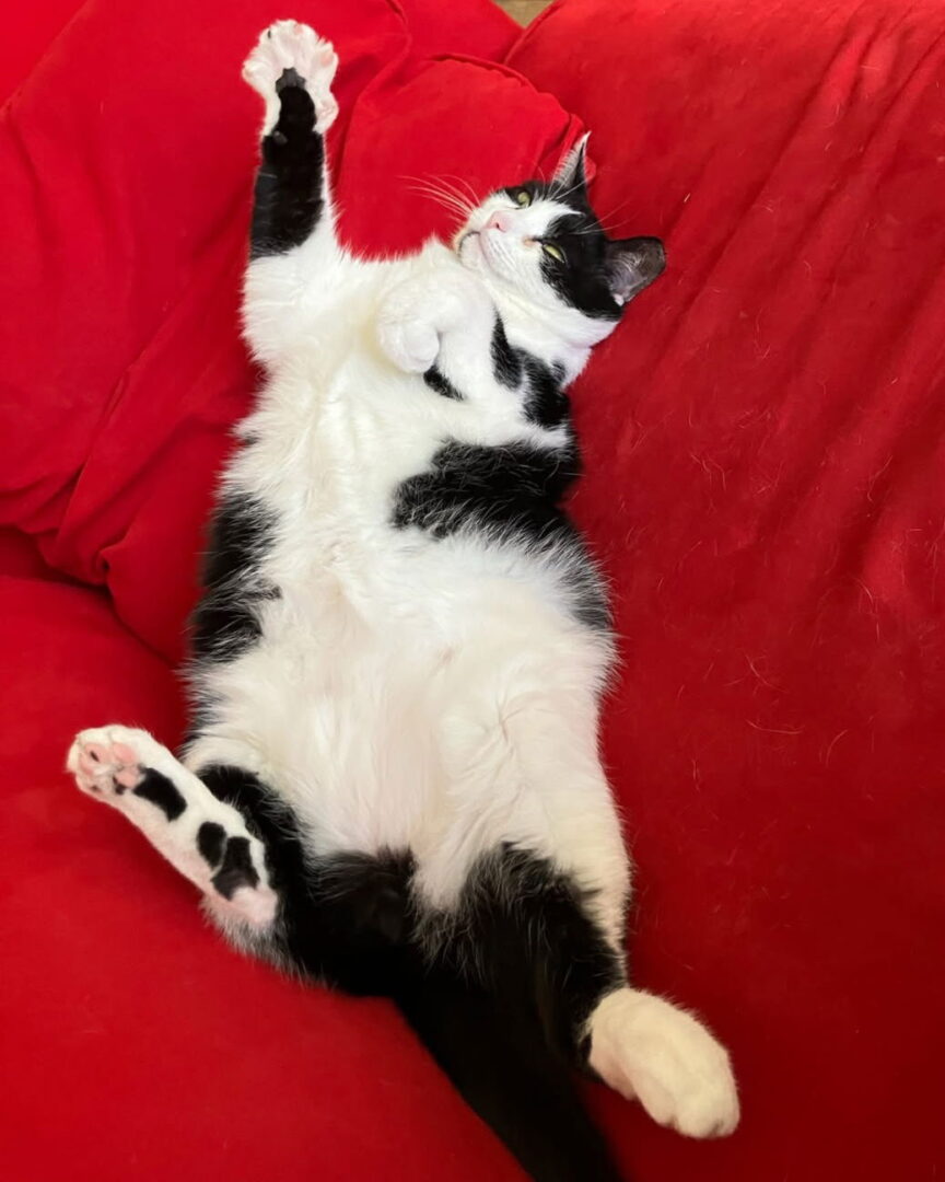 MiloJo is a very calm, very sweet, easy-going black & white 5 year old tuxedo who hasn't missed many meals (he's a bit portly!) This guy would love a lap to cuddle in and to sleep in bed along with his new family member(s). He's lived with other cats and dogs; seems to take any changes in stride without much difficulty. He was a stray without a home when he was taken in by a kind woman who got him neutered & vaccinated. Later, when she had to move & couldn't take him with her, a friend took him in; but when she couldn't keep him any longer, Purrfect Friends agreed to take him in and help him find a new home. Adoption fee (60.00) includes Spay or Neuter, vaccinations, combo-tested – negative for FeLV & FIV, and micro-chipped. If interested in adopting, please fill out our application at https://www.pfcatrescue.org/adoption-application/