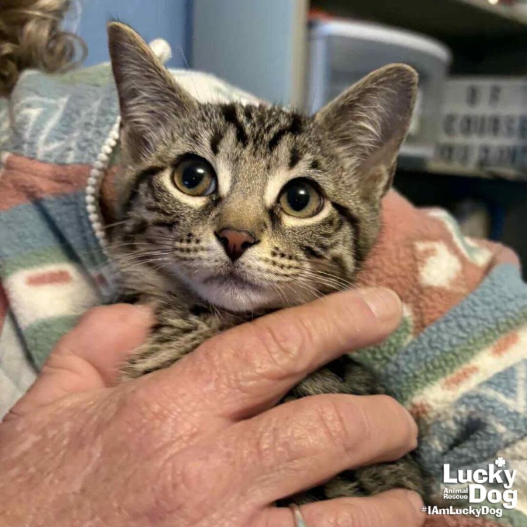 Please contact Diana Chotoo (diana.chotoo@luckydoganimalrescue.org) for more information about this pet.Just a Cute Kitten Looking for a Forever Home!MILWAUKEE JON NEEDS A FOREVER HOME! Name: Milwaukee Jon Best Guess for Breed: Domestic Short Hair Age: 11 Weeks DOB: 11/03/25 SEX: Male Approximate Weight: 3lbs as of 11/3 Coloring: Brown Tabby Type of Hair: ShortLitter: Milwaukee Jon, Mike Teflon, McKurdy Pearl Gets Along With: Because of their young age, Milwaukee Jon will likely get along with other cats, dogs and kids with an acclimation period. We’re happy to help with tips and tricks! Currently Living at: DC area foster home I am Looking For: My loving forever family! Hi! I’m Milwaukee Jon, and I am a cute little kitten! I won’t ask for much- just some love, cuddles and lots of toys so I can run and play and be my kitten self. Two kittens are more fun than one – consider adopting one of my super cute siblings, too! What My Foster Says About Me: Milwaukee Jon is the calm, gentle old soul of the trio — even though he’s just a kitten. He’s the first to settle in for a cuddle and the last to cause any trouble. With his soft expression and relaxed personality, he’s the kind of cat who adapts instantly: new places, new people, new routines — he takes it all in stride. He loves being close to you (bonus points if you’re sitting in a soft chair he can claim), happily lounges with his siblings, and has the most photogenic “sleepy face” you’ve ever seen. Jon is affectionate without being clingy, playful without being wild, and sweet without even trying. Kitten Vetting Requirements: Your kitten may not be fully vaccinated upon adoption. You will be responsible for providing whatever remaining vaccines are needed to complete the kitten vaccine series. TO ADOPT: The adoption fee for adult cats is $200 ($350 for two cats adopted together). The adoption fee for a kitten (under 7 months old) is $220 ($380 for two kittens adopted together).If you are interested in adopting, please complete the Adoption Questionnaire online at bit.ly/adoptaluckycat. Lucky Dog Animal Rescue does our best to provide accurate information about the cats we have for adoption. That said, we cannot make any guarantees about age, breed or temperament. Thank you for contacting Lucky Dog Animal Rescue and helping to save a life! Please visit us online at www.luckydoganimalrescue.org . BE A FOSTER!!! Fosters make it possible for Lucky Dog Animal Rescue to save and care for homeless and abandoned dogs! To learn about fostering, please contact fostering@luckydoganimalrescue.org BE A SPONSOR!!!! Sponsors help Lucky Dog support the many dogs we save. To learn more about sponsorship, please contact info@luckydoganimalrescue.org !