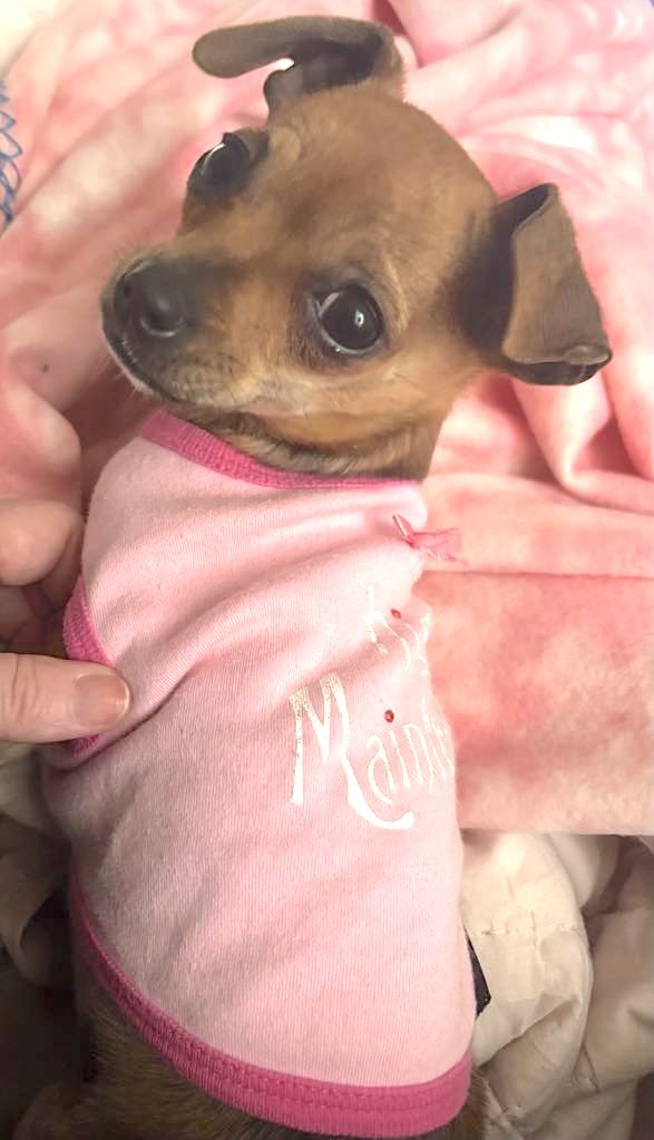 See Minnie Kai’s HomepageGo to our official websiteYou can fill out an adoption application online on our official website.Minnie Kai is a 12 week old Chihuahua, she only weighs about 4 pounds right now. The doctor thinks she will get as big as 10 pounds. Minnie Kai is a sweet little girl and is a little shy right now due to being unwanted. She is friendly when she feels comfortable with you and is a snuggle bunny within minutes. Minnie Kai will need another small dog to learn from and to have a buddy. She is such a good girl and just needs a soft place to land. If you would like to meet Minnie Kai please fill out an application from our website. Her foster mom is requesting Minnie Kai have another small dog as a buddy and a fenced yard for her safety.