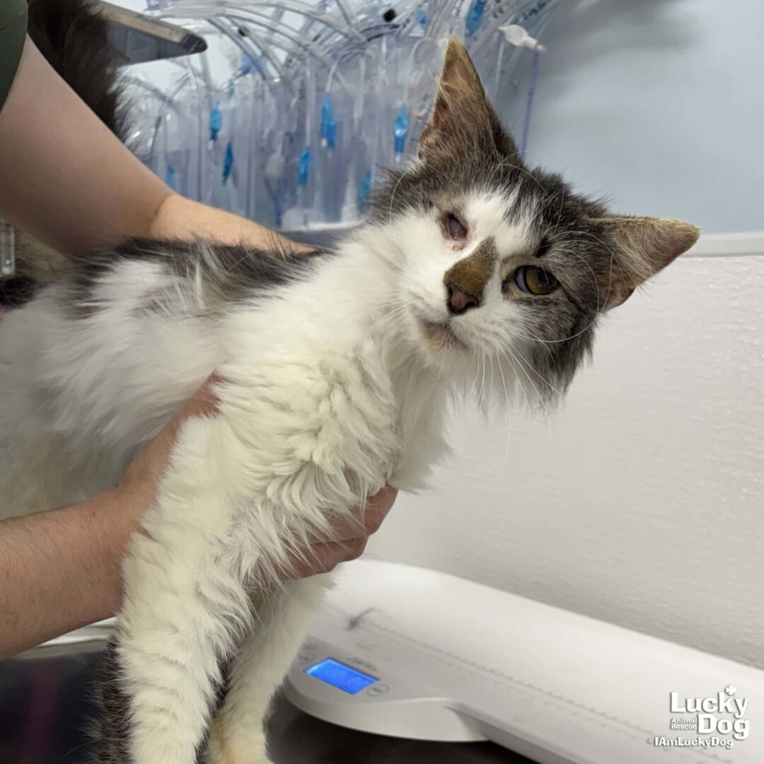Please contact Lauren McCarty (laurenmc@luckydoganimalrescue.org) for more information about this pet.Handsome boy in search his forever home!MISA NEEDS A FOREVER HOME! Name: Miso Best Guess for Breed: Domestic Medium Hair Age: 6 years Estimated DOB: 4/8/2020 SEX: Male Approximate Weight: 5lbs 2 oz Coloring: Brown and White Type of Hair: Medium Gets Along With: With proper introductions, Miso will likely get along with other cats, dogs and kids with an acclimation period. We’re happy to help with tips and tricks! Currently Living at: Shelter…coming to the DC area soon! Special Consideration: Miso will have his right eye removed and a dental prior to arrival I am Looking For: My loving forever family! Hi! I’m Miso, and I am a cute little guy! I won’t ask for much- just some love, cuddles and lots of toys so I can run and play and be myself. What my Foster Says About Me: Coming soon! TO ADOPT: The adoption fee for adult cats is $200 ($350 for two cats adopted together). The adoption fee for a kitten (under 7 months old) is $220 ($380 for two kittens adopted together).If you are interested in adopting, please complete the Adoption Questionnaire online at bit.ly/adoptaluckycat. Lucky Dog Animal Rescue does our best to provide accurate information about the cats we have for adoption. That said, we cannot make any guarantees about age, breed or temperament. Thank you for contacting Lucky Dog Animal Rescue and helping to save a life! Please visit us online at www.luckydoganimalrescue.org . BE A FOSTER!!! Fosters make it possible for Lucky Dog Animal Rescue to save and care for homeless and abandoned dogs! To learn about fostering, please contact fostering@luckydoganimalrescue.org BE A SPONSOR!!!! Sponsors help Lucky Dog support the many dogs we save. To learn more about sponsorship, please contact info@luckydoganimalrescue.org !