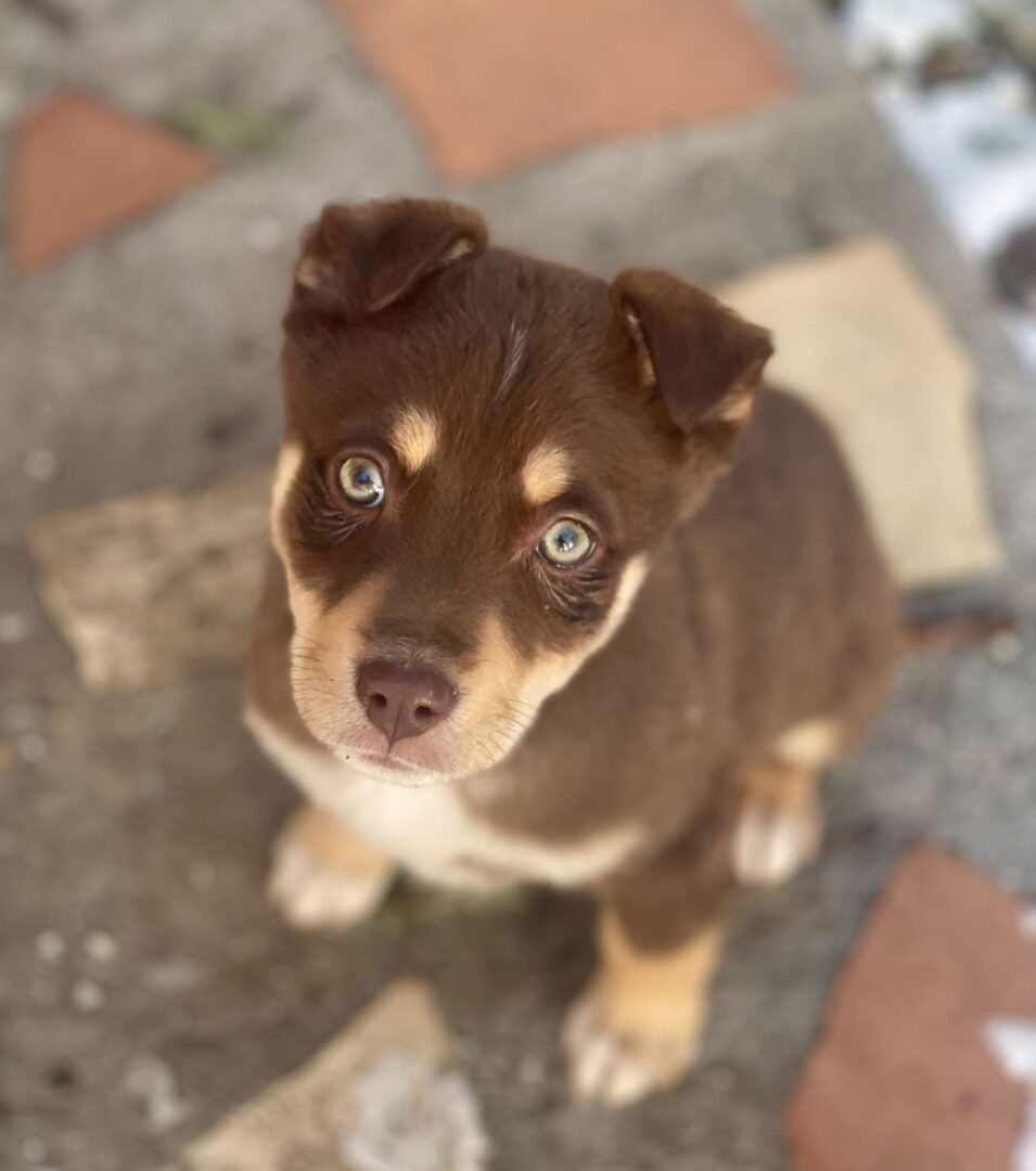 Meet Mittens a 10-week-old male Collie Mix, is eagerly waiting for his forever home! This adorable pup and his six siblings, known as the "Snow Babies Litter," were abandoned in rural West Virginia, With his stunning chocolate coat, caramel-covered paws, and mesmerizing green eyes that sparkle with mischief, Mittens is truly a sight to behold. Mittens is ALL Puppy with his Endless Energy: Always ready for playtime and exploration Curious Nature: Loves to investigate every nook and cranny Cuddly Companion: After a day of adventures, Mittens adores snuggling up for sweet puppy naps in your arms. If you're prepared to invest the love, time, and effort to help Mittens grow into his best self as a member of your family then please apply at oneloveanimalrescue.orgTo be considered as this pet's adopter, please go to https://oneloveanimalrescue.org/adoption-applications/dog-application/ to complete your application.