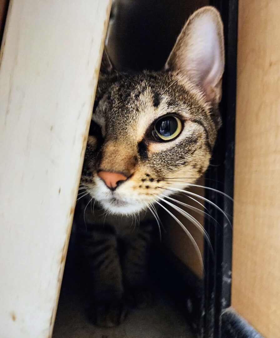 Miu Miu is a darling DSH gray tabby female born approximately 3/13/2022. Miu Miu (pronounced Mew Mew) is a sweet, gentle, cuddly kitten. She loves her brother, Calvin, and would do well in a home with another cat – or better yet Calvin! She is tiny, but she purrs like crazy when she's comfortable and being loved. She loves her foster family and approaches us quickly to be picked up and held. Miu Miu is microchipped and currently in a foster home. Her adoption fee is $105.