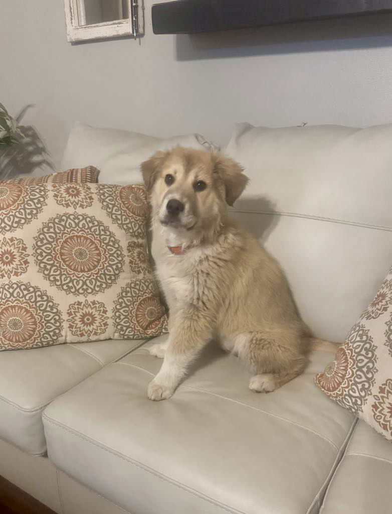 Meet Mocha, a sweet and fluffy 12-16 week old female Great Pyrenees (Pyrenean Mountain Dog) mix puppy looking for her forever home! Currently weighing 20lbs, Mocha is a ball of love who enjoys cuddles, playing with chew toys, and spending time outside exploring. Mocha is already spayed, up to date on vaccines, and chipped. Mocha is still working on potty training, but is a quick learner! She has mastered the doggy door and is doing great with outdoor potty breaks. She’s also kennel trained and sleeps peacefully through the night in her own space. Mocha gets along well with other dogs and even cats, though one of the foster kitties loves her kisses while the other prefers some space, so she’s learning to respect boundaries. She’s great with both adults and kids, but because I’m a big puppy, I’d do best in a home with children 6+. While Mocha loves to snuggle, she’s also independent and a little stubborn at times. She might bark to let everyone know she’s there and protecting her family, just a natural guardian. If you’re ready for a smart, playful, and loving puppy who will grow into a loyal and affectionate companion, she could be the perfect fit! Mocha requires a secure 5-6 ft fenced in yard. If you are interested in meeting Mocha, the first step is to complete a meet and greet application at https://www.corgisandfriends.com/forms We require the application, home and reference check, and meet with everyone in the home. Mocha’s adoption fee is $450 and we do not adopt outside of Colorado.