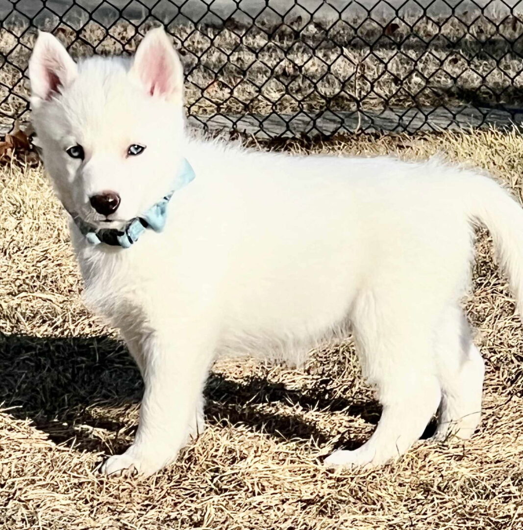 Mochi is scheduled for her spay on March 18 and will not be available for adoption outside of a 30 minute radius of Des Moines until after her spay. Mochi came to Iowa from an Oklahoma shelter with her momma Zarah and 8 siblings when she was approximately 5 weeks old. She was assigned a birthdate of 11/23/24 since we don't have an exact date of birth. Mochi is a possible Border Collie/Husky mix and weighs 14 lbs. at 12 weeks old. Mochi is the sweetest little girl who will melt your heart in a minute. She loves to cuddle! Mochi looks like a fluffy cloud with icy blue eyes and has a calm personality. She is taking well to potty training and sleeps in a kennel at night. She plays well with her foster brothers and her foster humans. Shortly after arriving at her foster home, she did take a little tumble while playing, which resulted in a fracture to her right hind leg near the knee. Mochi has healed well and is out of her splint. She will need a little time to regain the flexibility and rebuild the muscle after having been splinted for a few weeks. She was diagnosed with parvo on February 5, 2025 and received the monoclonal antibodies and antibiotics. With exceptional care from her foster family, she was back to normal in a couple of days. Mochi has proven to be very resilient and is happy-go-lucky girl ready to meet her new family and experience the world with them. She will not be adopted to a family living in an apartment, condo, or townhouse due to her being vocal at times and needing a yard to play in. We are looking for a family that has experience owning active, vocal dogs and one that can keep up with a very active dog. Another active, social dog living in the home is also a plus. Siblings: Pepe Le Pew (M) Penelope (F) Flower (F) Honey Badger (F) David Bowie (M) Akela (M) Mochi (F) Kallik (F) Yeti (M) If you are interested in meeting Mochi, please complete an online application at https://hopeanimalrescueofiowa.duplie.com/forms/196/dog-application Adoption fee is $300 which includes spay/neuter, microchip, and age appropriate vaccines.
