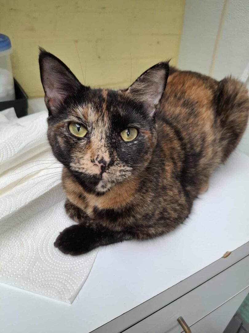 Momo – Female DOB 4/14/2023 Domestic Short Hair – Tortoiseshell Momo is a sweet, quiet tortie who’s looking for a calm and cozy home where she can finally relax and just be a cat. She’s a little shy at first, but once she feels comfortable, she loves attention and being gently petted. Right now, she’s spending time in our quiet room with a few other laid-back cats. She gets along with them as long as they give her a little space. Momo’s definitely a fan of high places—a sunny spot on a cat tree would be her idea of a great afternoon. She recently raised four kittens and was a wonderful mom. Her little ones will be off to their own homes soon, and now it’s Momo’s turn to find a place where she can settle in and be cared for. She’d do best in a home without dogs or young kids, somewhere low-key with people who understand that a slower approach works best for her. If you’re looking for a gentle companion who just wants a little peace, Momo might be your girl. Please apply via our easy online application at https://furrr.org/cat-adoption-process/All kitten(s) and cat(s) at FuRRR Feline Rescue are spayed/neutered, up to date on vaccinations for their age, combo tested for FIV/FeLV, microchipped and have a Health Certificate from a licensed NH veterinarian. Our application is available to be completed online at https://furrr.org/cat-adoption-process/ Applying DOES NOT guarantee approval. We hold meet and greets with approved applications only. (Kittens are available for adoption in pairs only unless they are going home to another kitten or young cat under 3) Our policy is strictly NO DECLAWING and INDOOR ONLY. Adoption fees: Kitten to 1 yr – $300 Kitten pairs $550 Adult cat 1+ yr to 8 yr – $200 Adult pairs $350 Cat 8+ – $75