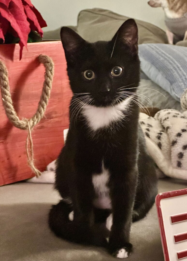 See Monica’s HomepageMeet Monica! Monica is an adorable tuxedo kitten with a sweet nature and a delightfully independent spirit. She enjoys being around people and appreciates affection, but she’s also perfectly content entertaining herself and doing her own thing. Her calm confidence makes him an easygoing and enjoyable companion. This little girl has a playful side that comes out when toys are involved—she loves batting, chasing, and exploring her surroundings with quiet curiosity. Monica is not overly demanding and does well entertaining herself, making her a great match for someone who appreciates a kitten with a balanced personality. Monica would thrive in a home that respects her independence while still offering love, playtime, and a warm lap to sit on. With her charming tuxedo looks and sweet, self-assured demeanor, she’s sure to make a wonderful addition to your family! —To meet any of our cats please fill out our adoption application to be approved. Our application can be found under the ‘Adopt’ menu on our website: www.felineurbanrescueandrehab.org. —FURR is a 100% volunteer organization. Every penny donated goes to paying our vet bills, caring for our cats, and TNR. FURR is a 501(c)3 organization so donations are tax deductible.
