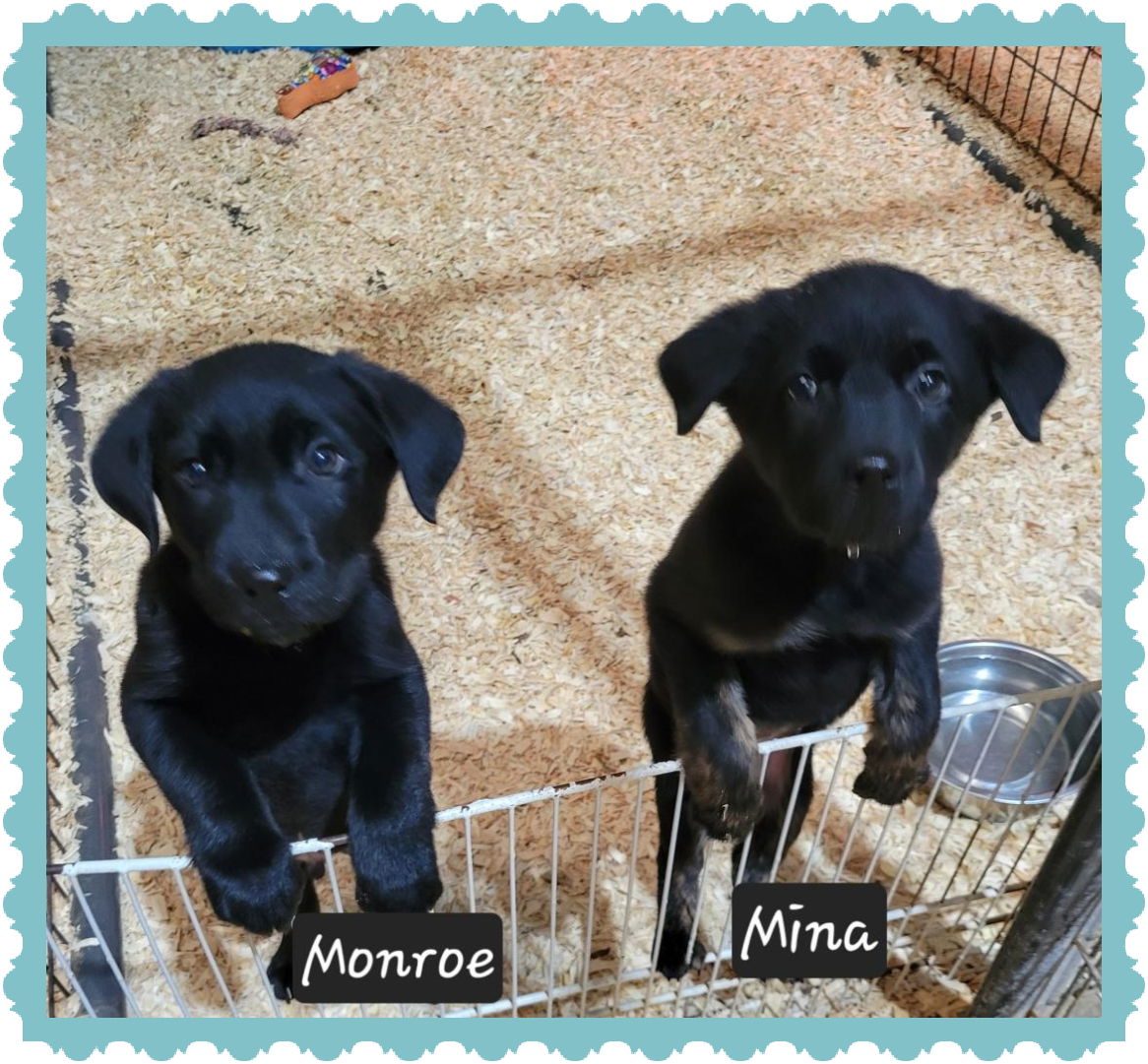 Lab mixes Monroe (male) & Mina (female) are 9-10 weeks old. These are super sweet, friendly puppies. Both of them currently weigh about 9 lbs., & we’re guessing that they’ll be in the 45-50 lb. range, full grown. If you’re interested in adoption either Monroe or Mina call Friends for Animals 817-326-3647 to set up a meet/greet appt. Phones are answered Noon-3 pm Tues., Thur., Fri. & Sat. Please call before you visit to make sure the dog you’re interested in is available.