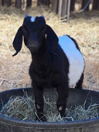 Say hello to the littlest Moon pie! This little cutie came to us as a stray, and sadly, no one ever came looking for him. But now, Moon pie is ready for a fresh start and a forever home that will give him the love he deserves. Estimated to be around 6-9 months old, Moon pie is still a bit shy and learning to trust people. With time, patience, and kindness, we're confident he'll come to enjoy all the cuddles and scratches he can get! Moon pie will thrive in a home that provides: Secure fencing to keep him safe, Companionship-he'd love some goat or livestock friends, And regular care from a kind and patient human. If you have room in your heart (and your pasture) for a young goat with tons of potential, Moon pie might just be the perfect addition to your herd.