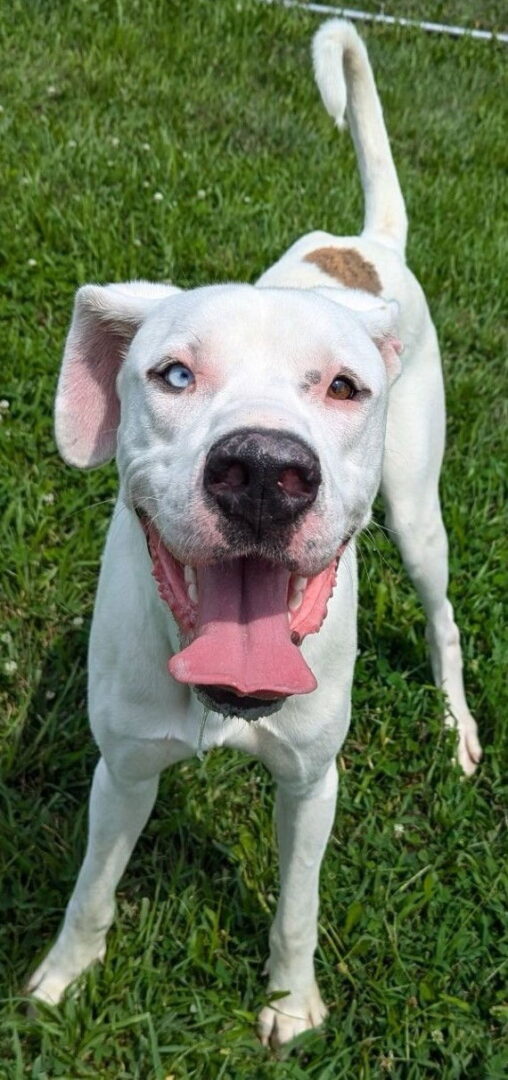 Johnson County Animal Shelter Meet Moose, our gentle giant with a heart as big as his paws! Moose is a 2-year-old, 84.9-pound Great Dane/American Bulldog. He came in shy and skinny, not wanting much to do with anybody. With time and care, Moose has blossomed into a sweet, loving boy who adores being close to his people. Moose enjoys exploring the great outdoors and seems to appreciate the company of other dogs. He may not be big on toys, but he loves rolling in the grass, lounging in the shade, and savoring a tasty treat or two. If you're looking for a loving companion with a gentle soul, Moose is your guy! We do all adoptions with approved applicants by appointment only. If you are interested in adopting, please contact us via FB Messenger or email us at jcasreception@co.johnson.in.us for an application. You can also find one on our website at http://johnsoncountyanimalshelter.com/adopt/. Once an application is submitted and approved, we can set an appointment to meet the pet!