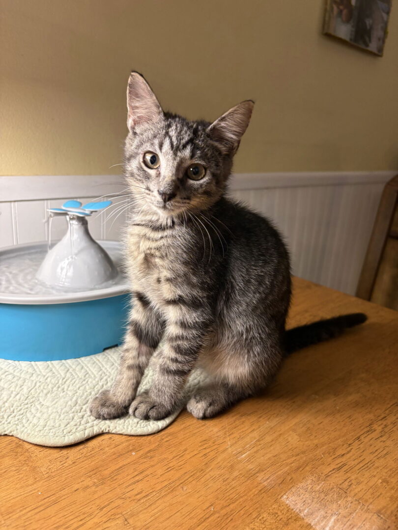 Morgan is a handsome male tabby with a distinctive ‘M’ on his forehead. Morgan is a sweet, playful boy