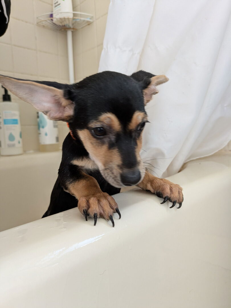 Meet Morgan! Morgan is a 10-week-old puppy looking for a loving home to grow up in. Could it be yours? She’s an adorable ball of puppy love with a big personality packed into a small body. Morgan’s dad is a mystery, but her mom is a possible corgi–heeler mix who weighs just 18 lbs (and at least 2 lbs of that are ears!). Based on mom’s size, we expect Morgan to be around 20 lbs full grown. Morgan’s mom is a sweet, cuddly girl, and Morgan definitely takes after her. Morgan is up to date on all age-appropriate vaccinations, is working on pad training, and will be available for adoption after her spay in early February. Her adoption fee is $400, which covers her vaccines,spay,transport, and microchip.