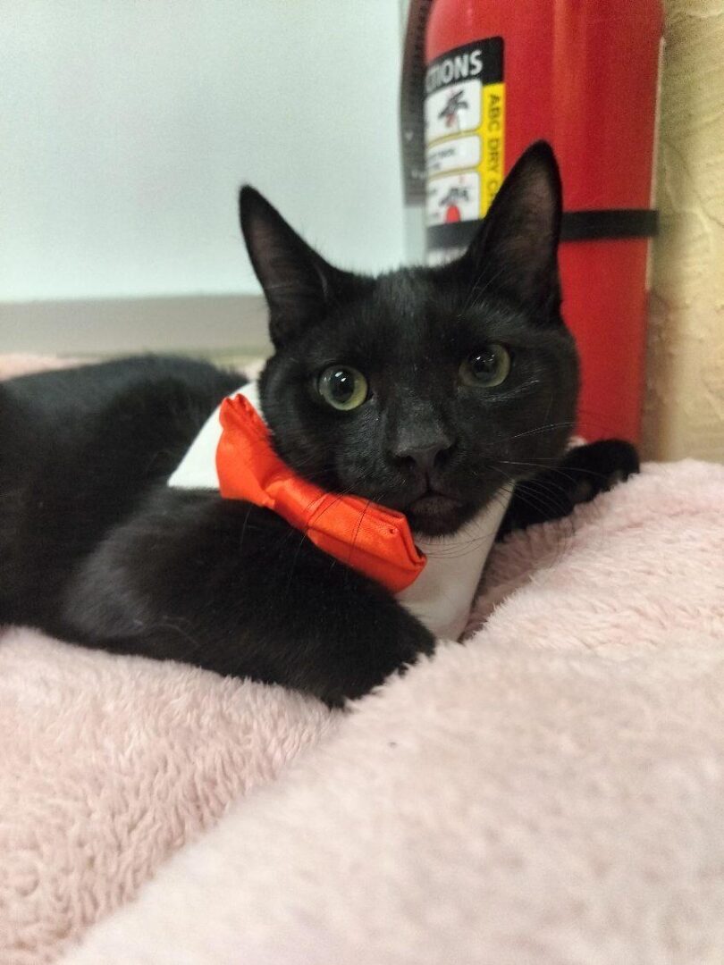 Super loving Mr. Milo has one mission each day – to be around his people as much as possible and soak up every bit of attention that comes his way! He’s a sleek and polished little ebony dude who’s destined to be a stunning big boy with a personality that will win the hearts of everyone he meets. When he feels safe with you he becomes the most devoted friend you could hope for. He has also been good with cats, and with dogs and with children. For lively playtimes he can always count on his happy-go-lucky siblings and the toys and games they all enjoy, including anything that rolls and even empty boxes to hop in and out of! Then it’s snuggle time for this cloud-soft gem with the most beautiful green eyes. He’s a true classic in appearance and black cat personality and will be the dearest treasure in a loving and protective forever family. Mr. Milo hopes you choose him! For more information & an online application go to https://www.cathouseonthekings.com/adoption/cat.php?id=27261&ts=1761721409&src=rg