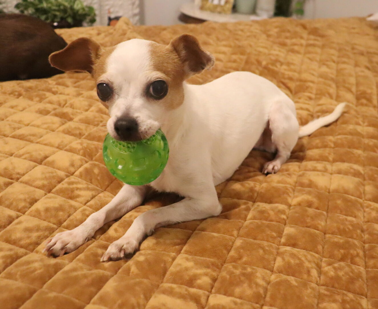 Hello world…. Ms. Peach here! I am a tiny, 7.5 lb, precious little girl. I was impounded and then rescued by SCP. I am very, very grateful. I am an interesting little gal. I live fine with other dogs and cats for the most part, until it comes to my ball. I am very protective of my ball. I LOVE, LOVE, LOVE my ball. I carry it around everywhere and I can play fetch for hours! Take my ball away and I will focus on you:) I am a sweet girl and very quiet (until a repair guy comes over!) I am crate trained and pretty well house-broken, if taken out regularly. I love to be snuggled and held. I travel very well, and I am fine with strangers:) I am a great dog! I just tend to be protective of my ball and sometimes my bed. Just something to be aware of:) If you are interested in me, please send an email to us! Applications can be found on our website at secondchancepets.org under the "Forms" tab. Please complete and return to us for review! All dogs typically show on Saturdays at the Petco in Clear Lake as well. 2410 Bay Area Blvd near Space Center. Adopter for this dog must reside in the immediate Houston/Galveston area and be at least 25 years old. A home visit may be required prior to this dog going to any home. The adoption fee for a dog is $190 (or $245 for puppies). All dogs are microchipped, on heartworm protection, spayed/neutered, vaccinated, de-wormed and treated for fleas.