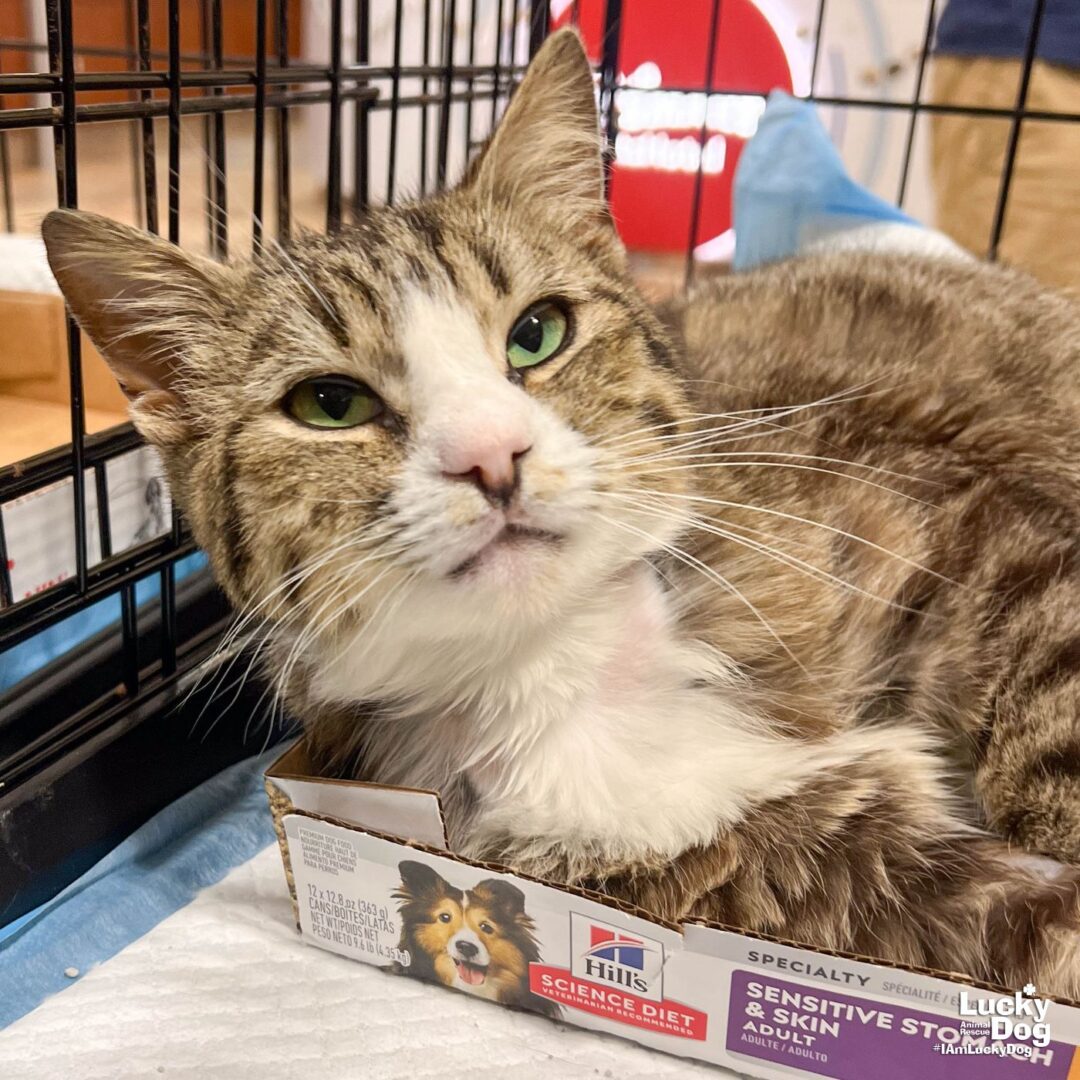 Please contact Diana Costa (diana.costa@luckydoganimalrescue.org) for more information about this pet.Let Muffin Man Sweeten Up Your LifeMUFFIN MAN NEEDS A FOREVER HOME! Name: Muffin Man Best Guess for Breed: Domestic Short Hair Age: 4 years as of 3/11/26 Estimated DOB: 3/9/22SEX: Neutered Male Approximate Weight: 6.6 lbs as of 3/9/26 Coloring: Brown and White Tabby Type of Hair: Short Gets Along With: Muffin Man will likely get along with other cats, dogs and kids with an acclimation period. We’re happy to help with tips and tricks! Currently Living at: Foster Care I am Looking For: My loving forever family! Hi! I’m Muffin Man, and I am a sweet boy! I won’t ask for much- just some love, cuddles and lots of toys so I can run and play and live my best life. What My Foster Says About Me: Coming soon! TO ADOPT: The adoption fee for adult cats is $200 ($350 for two cats adopted together). The adoption fee for a kitten (under 7 months old) is $220 ($380 for two kittens adopted together).If you are interested in adopting, please complete the Adoption Questionnaire online at bit.ly/adoptaluckycat. Lucky Dog Animal Rescue does our best to provide accurate information about the cats we have for adoption. That said, we cannot make any guarantees about age, breed or temperament. Thank you for contacting Lucky Dog Animal Rescue and helping to save a life! Please visit us online at www.luckydoganimalrescue.org . BE A FOSTER!!! Fosters make it possible for Lucky Dog Animal Rescue to save and care for homeless and abandoned dogs! To learn about fostering, please contact fostering@luckydoganimalrescue.org BE A SPONSOR!!!! Sponsors help Lucky Dog support the many dogs we save. To learn more about sponsorship, please contact info@luckydoganimalrescue.org !