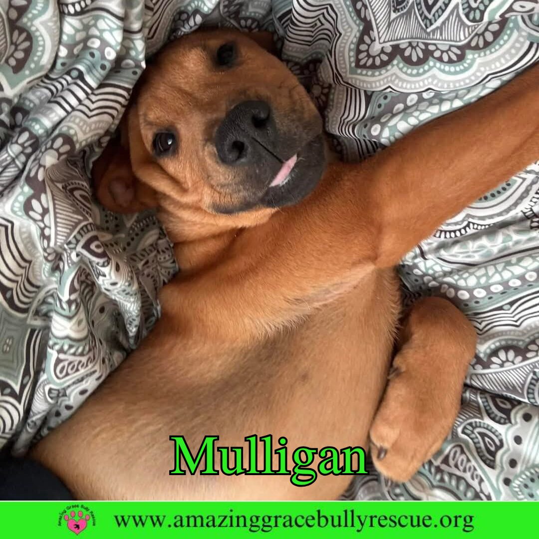 See Mulligan’s HomepageGo to our official websiteYou can fill out an adoption application online on our official website. Hey there, I'm Mulligan! You know, like the do-over in golf! I'm a young, sweet, and goofy pup with a friendly personality. I'm smart, too. I've mastered all the basic commands like 'sit', 'stay', and I’m learning to ring a bell to go outside! I’m gentle with everyone I meet, whether they're humans or other animals. My favorite thing to do is play. I love running around and exploring, but I'm just as happy curling up for a nap after a long day of fun. I'm a good boy, I promise. I'm just looking for a family who will love me as much as I'll love them. Adopt me, and let's make some beautiful memories together! Mulligan is from a litter that was rescued from the Mobile Animal Shelter. He is one of 7 born on Nov 4, 2024. Since Mulligan will be a medium-sized dog, we recommend a home with a fenced-in backyard and a daily exercise and socialization plan. Amazing Grace Bully Rescue is a foster-based rescue in Pensacola, Florida. We do not have a physical building. If you would like to meet any of our pups, the first step is to complete our online application, which will enable us to contact you. Mulligan will have four sets of shots and two dewormings (done before adoption). He will be neutered when he is old enough and will have a registered microchip. If you would like to adopt this Amazing dog, please fill out our online adoption application at www.amazinggracebullyrescue.org If you have any questions, please text your question to 850-723-2037. You may also send a message to our Amazing Grace Bully Rescue Page on Facebook, Twitter, or Instagram or send an email directly to amazinggracebullyrescue@gmail.com Disclaimer: We are located in the Pensacola, Florida, area and will consider local applicants first, especially for the puppies, as we utilize a local veterinarian.