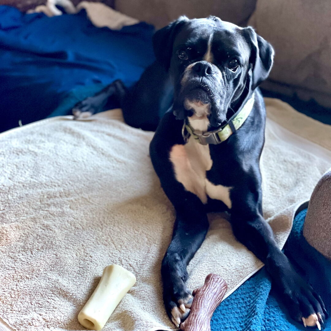 Hello, my name is NALA! I am a 5 year old reverse brindle German Boxer. I am a large girl but very gentle so I don’t jump up on people. I spent my life having puppies, separated from other dogs and now it's my turn to be adopted! I love to run and play in my foster's fenced backyard. I need moderate exercise and like to show off my goofy Zoomies. Then, I'm a couch potato. I love cuddles, belly rubs and being a big lap dog. I forget sometimes that I can’t fit on everyone’s lap.. I know basic commands: sit, stay, paw, come, inside, up and they’re still trying to figure out what else I know (probably a lot more, I’m a smarty pants ). We are working on leash manners and being brave around loud cars and noises. Nobody is perfect but I'm close. I am housebroken, crate trained and I love my people! I walk right in my crate when you say “inside” and point but I really love to share a bed or couch with my humans. I snore very quietly and I’m not a restless sleeper. I would do best in an only dog home. I previously lived with children of all ages and a cat. I am timid at first with strangers but once I get to know you, I am your best friend! I am wishing for my furever home and loving family in 2025 Located in Long Island, NY. https://chboxerrescue.com/adopt/ DOB: 5 years WEIGHT: 70lbs DOGS: No CATS: YES KIDS: YES