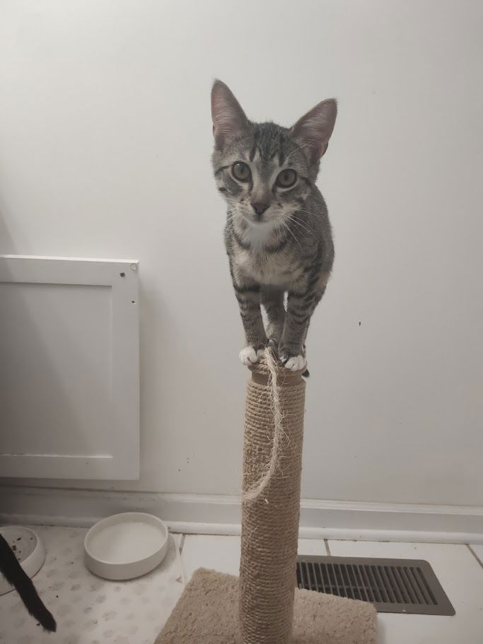 See Nala’s HomepageGo to our official websiteYou can fill out an adoption application online on our official website.Please contact MiMe for more information about this pet.Thanks for your interest in a pet from A.R.F.! If you see a pet here, they are still available for adoption and you should apply through our adoption application on our website at https://www.arf-il.org/adopt/application/ Meet Nala, a stunning silver tabby with a gentle heart and a sweet personality. While she may be a little shy at first, Nala warms up slowly with patience and kindness, and once she trusts you, she’ll reward you with her soft purrs and affection. She loves getting pets, playing with strings and tiny toy mice, and is always ready for a treat (just crinkle the bag or sit on the floor, and she’ll come running!). Nala has shown lap-cat potential and is learning how to enjoy snuggling during quiet moments. She is also dog-friendly and would thrive in a home with her brother, Zazu, or another friendly cat to help her feel secure. However, due to her gentle and timid nature, Nala would do best in a home without small children, as loud noises and quick movements may overwhelm her. Together, Zazu and Nala make the perfect pair—balancing Zazu’s wild antics with Nala’s gentle nature. They would love to grow up side by side in a home full of love, but they can also adapt separately if the right family comes along. Could you be Nala’s forever home? We encourage you to consider adopting kittens in pairs! There are several reasons why Nala would do good with a friend, including: – Two kittens keep each other entertained – they will play and get all their energy out on each other in time for snuggles with you! – Having two kittens to play with each other prevents potential "I'm lonely and bored" behavioral issues. – Watching two kittens wrestle is quite possibly the cutest thing you will ever see. – The kittens will teach each other "how to cat" and learn to be more social with humans and people. – You'll save two lives instead of one! Nala is microchipped, up to date on all vaccinations, spayed, and litter box trained. Nala's adoption fee is $165. If you are interested in meeting Nala, please fill out our online kitten adoption application at https://www.arf-il.org/adopt/application/ today! Once your application has been approved, an A.R.F. volunteer will be able to contact you to arrange a meeting. Thank you for considering a rescue pet from A.R.F.-Animal Rescue Foundation! We are based in Wheaton, IL and conduct adoption events in the DuPage County area. If you are interested in adopting one of our pets, please submit an adoption application at https://www.arf-il.org/adopt/application/ Adoption appointments are scheduled based on the order of applications received, so submit your application early! Submitting an application does not commit you to any animal but does get you a head start with the adoption approval process. Due to a high volume of applications, we are often unable to respond to questions or schedule meetings until your application has been approved. More information about our adoption process can be found on our website here: https://www.arf-il.org/adopt/ As an all-volunteer, foster home-based organization, A.R.F. Animal Rescue Foundation does not have a facility where applicants can visit our animals. Please visit https://www.arf-il.org/events/ for a list of our upcoming adoption events. Thank you for choosing to adopt, not shop!
