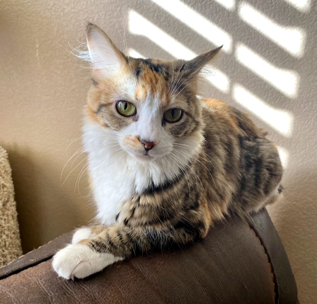 I was found in an apt laundry room with newborn babies and taken into a foster home to raise them safely. Now that my babies are all grown up, I’m ready for ME time. I am very sweet and affectionate and super playful. I don’t mind being picked up and carried and I love pets. I like to jump on high shelves and check out the view, sneak into closets and follow my humans around. I still remember my old ways of running outside and don’t understand it’s not safe out there so I try to sneak outside when doors are open so please protect and watch out for me near open doors. I enjoy watching out windows and playing in boxes. I can be feisty when I get excited and want to be playful but I don’t mean any harm. I am good with other cats and dogs but recommend a slow introduction. I am tested, spayed, vaccinated, and micro-chipped. My estimated birth date is 11/1/2022 and my adoption fee is $140.
