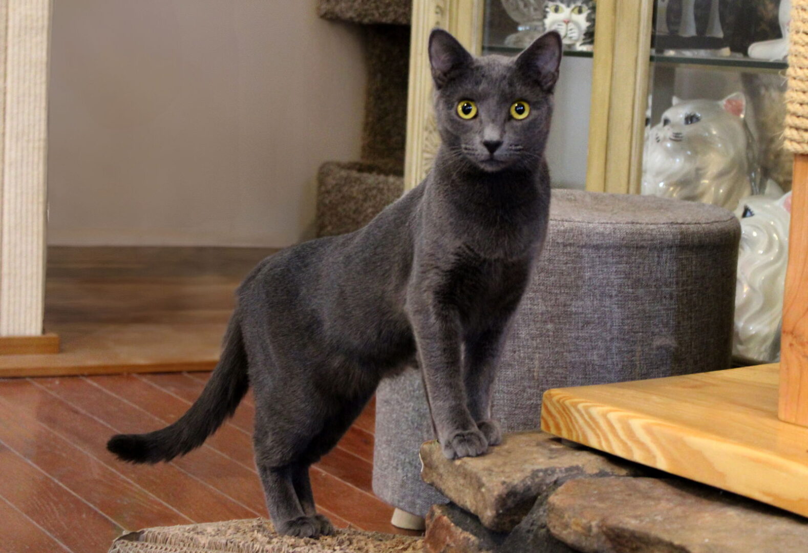 See Nala’s HomepageGo to our official websiteSleek, sweet, and full of sass—Nala is a stunning Russian Blue mix with smoky grey fur and eyes full of curiosity. At just a year old, she’s still very much a kitten at heart—chasing toys, pouncing on shadows, and turning even the simplest things into a game. Whether she's zooming across the room or batting around a crumpled piece of paper, Nala brings pure joy and kitten energy wherever she goes. But don’t let the playful side fool you—Nala has a gentle, affectionate soul. She loves attention, cuddles, and will reward your affection with soft purrs and plenty of love. If you're looking for a cat who’s the perfect blend of mischief and sweetness, Nala’s your girl.